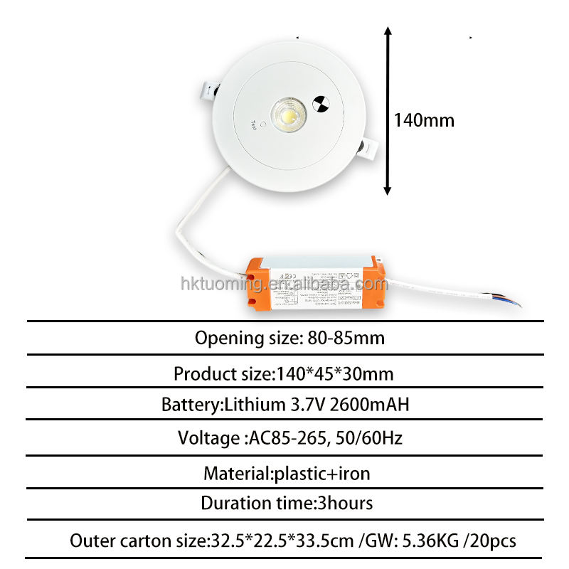 Product Name:Rechargeable Recessed Mounted COB 3W Led Emergency Downlight