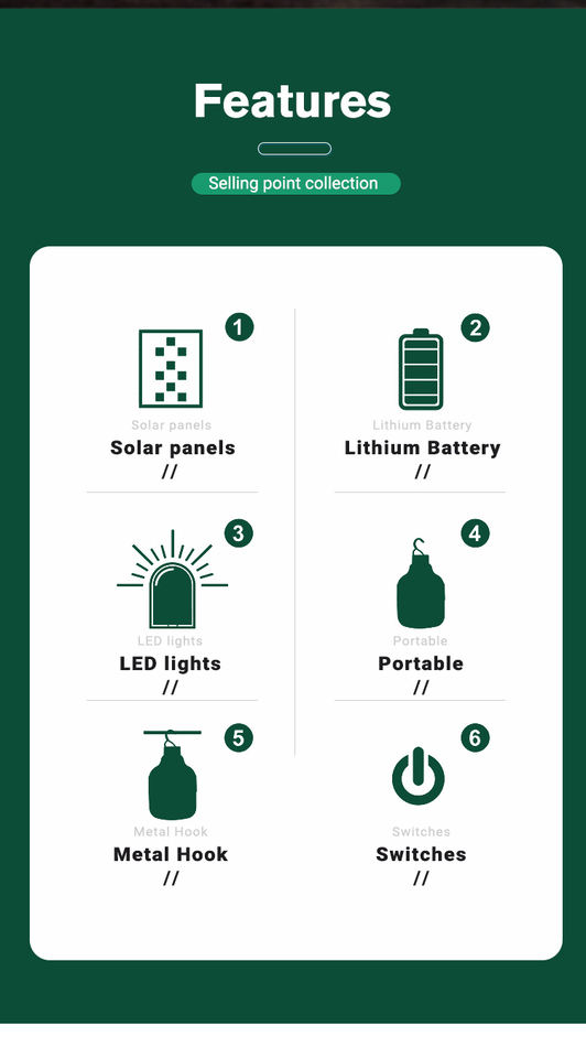 Product name:Outdoor Portable Camping Lamp Solar Rechargeable Emergency Led Bulb