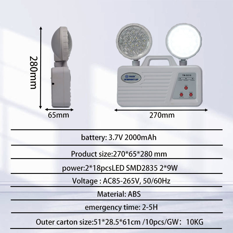 Tuoming Super Brightness Double Heads Indoor Tunnel Portable Charging Led Double Head Emergency Light