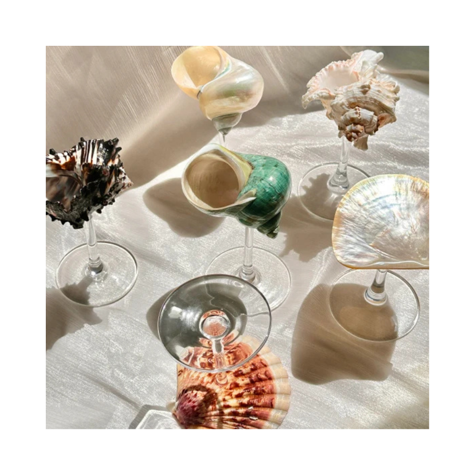 Turbo Shell Wine Glass Handmade from Real Conch Glass for Outdoor Coastal Wedding and Banquet Use