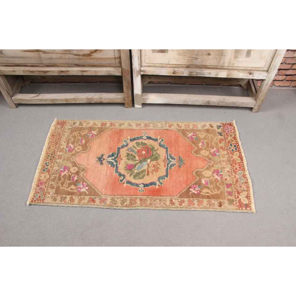 Turkish 0.2x3.6 ft Rug, Runner Vintage Rug, Red Persian Wool Rug