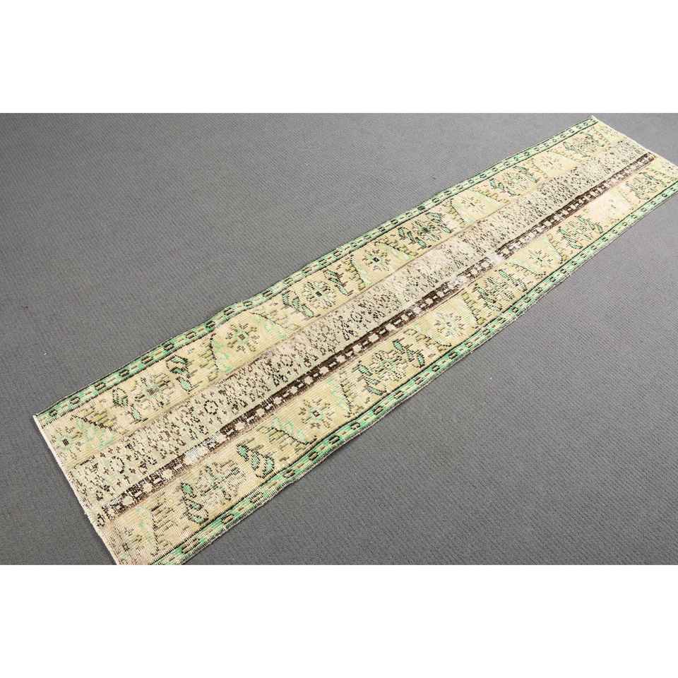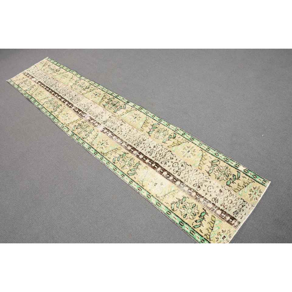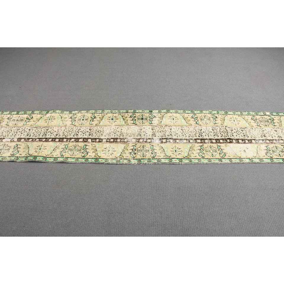 Turkish 1.8x8.3 ft Rug, Runner Vintage Rug, Green Brown Camouflage Rug