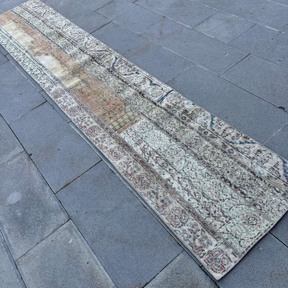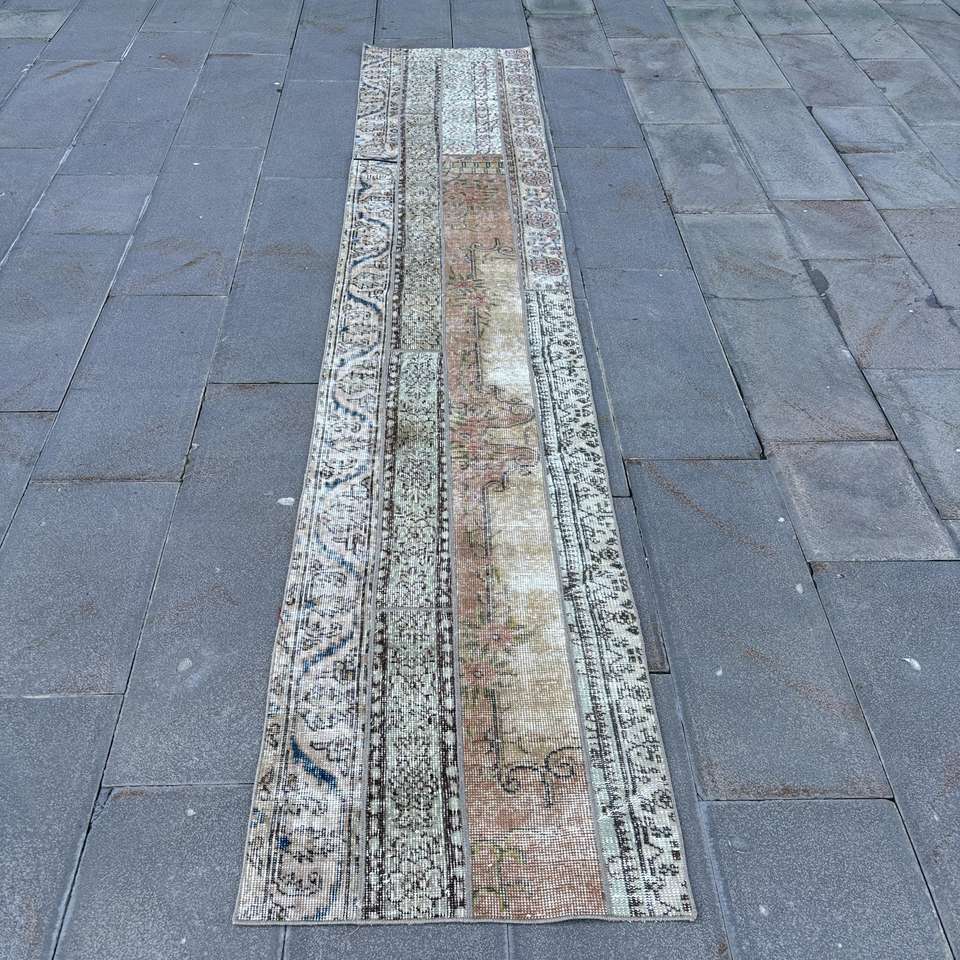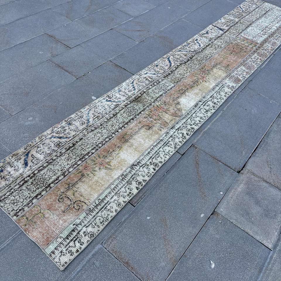 Turkish 2.1x10.7 ft Rug, Runner Vintage Rug, Brown Blue Floral Rug