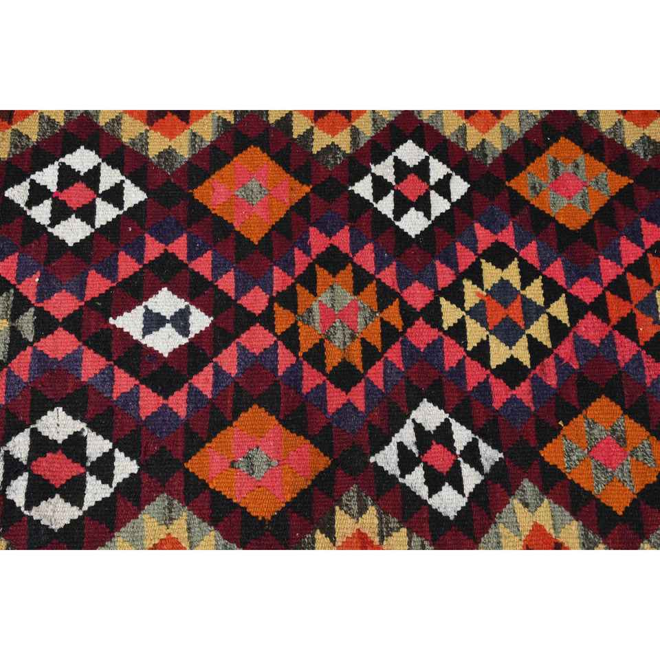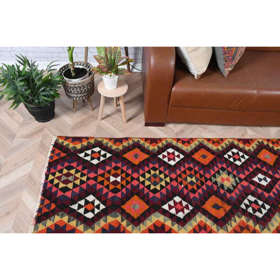 Turkish 2.2x10.3 ft Eco-Friendly Vintage Runner Rug Red Orange Patchwork Wool with Latex Backing