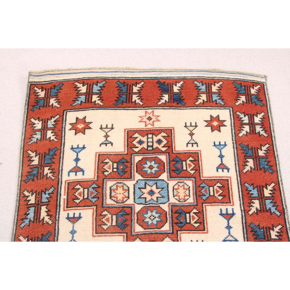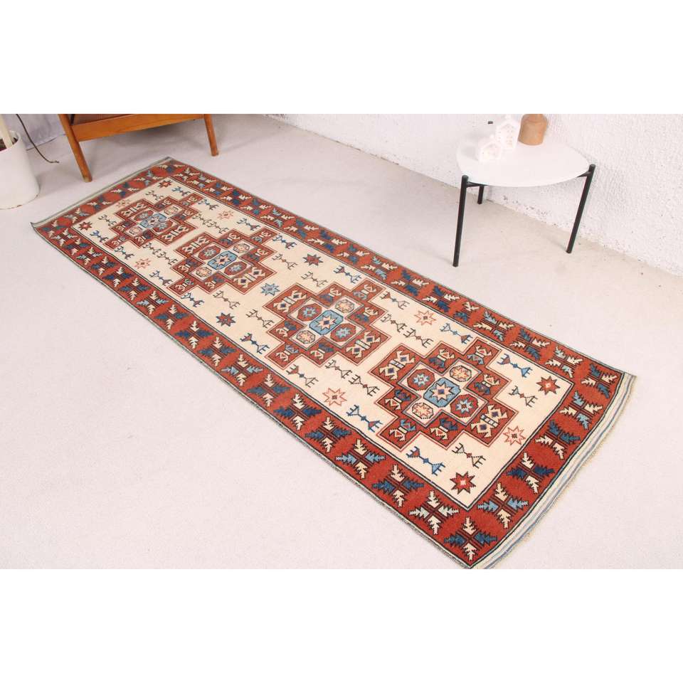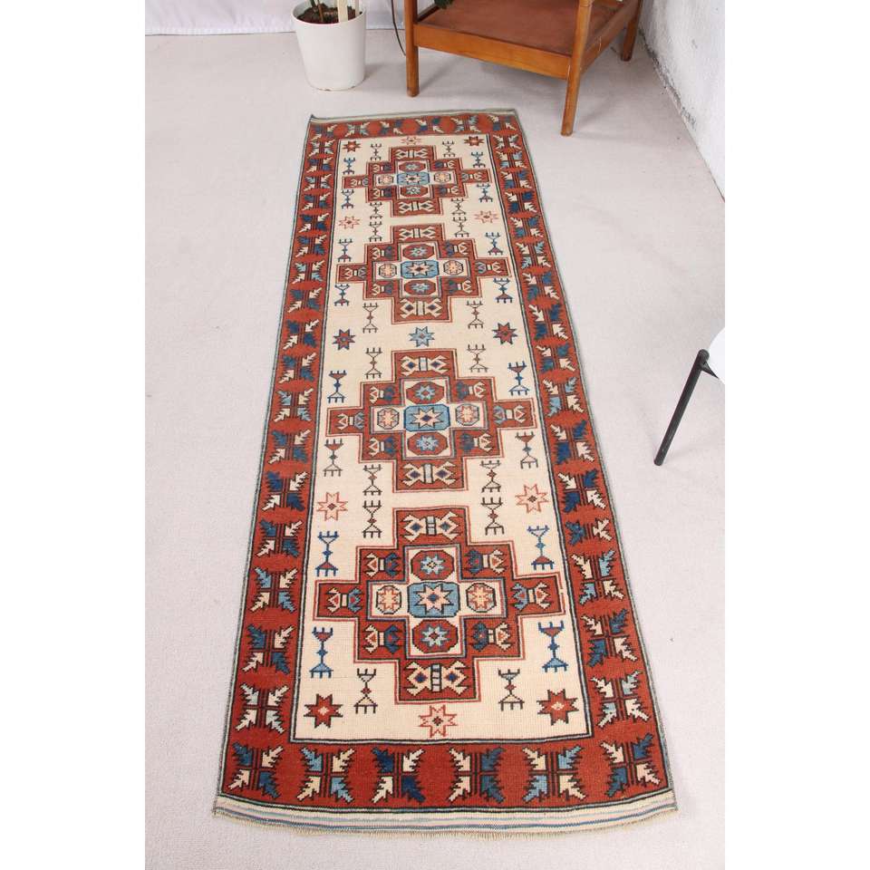 Turkish 2.2x7.6 ft Rug, Runner Vintage Rug, Red Blue Ikat Rug