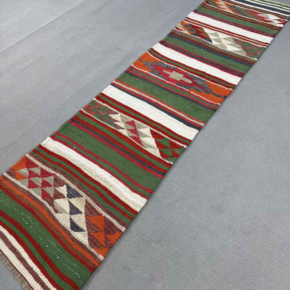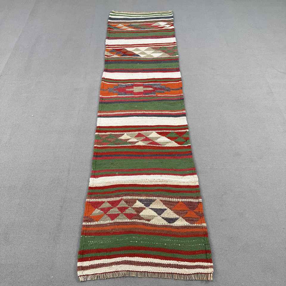 Turkish 2.4x9.6 ft Rug, Runner Vintage Rug, Green Red Oriental Rug