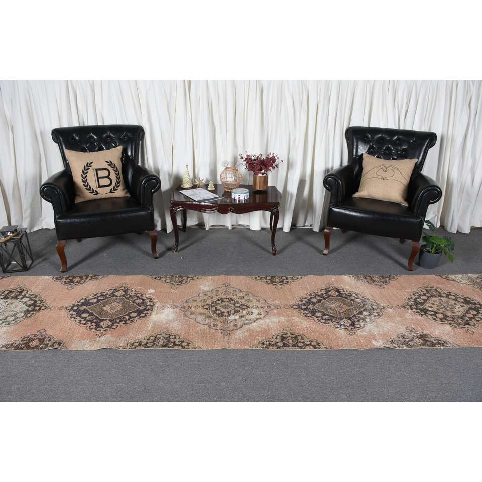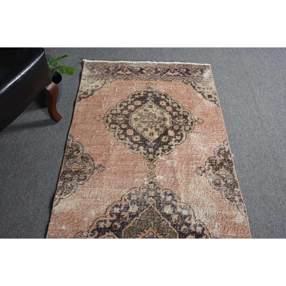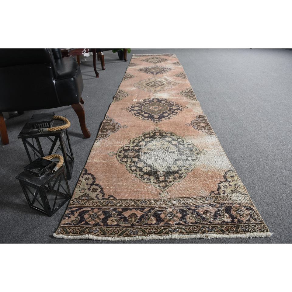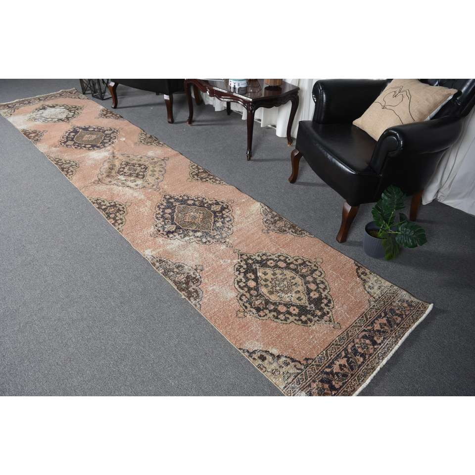 Turkish 2.7x13.2 ft Rug, Vintage Rug, Brown Patchwork Rug Wool