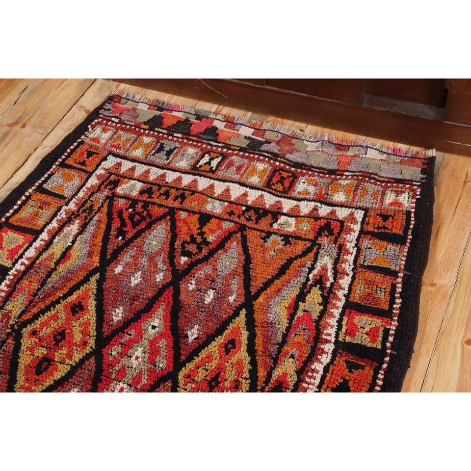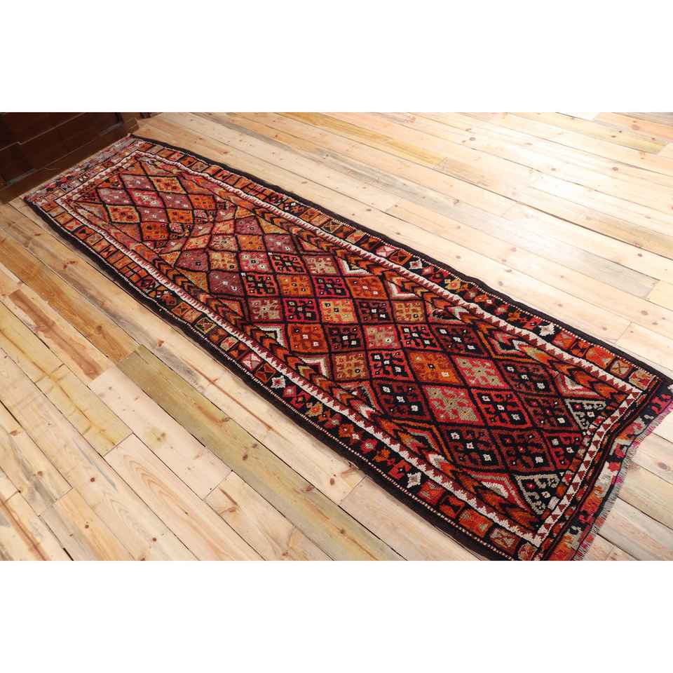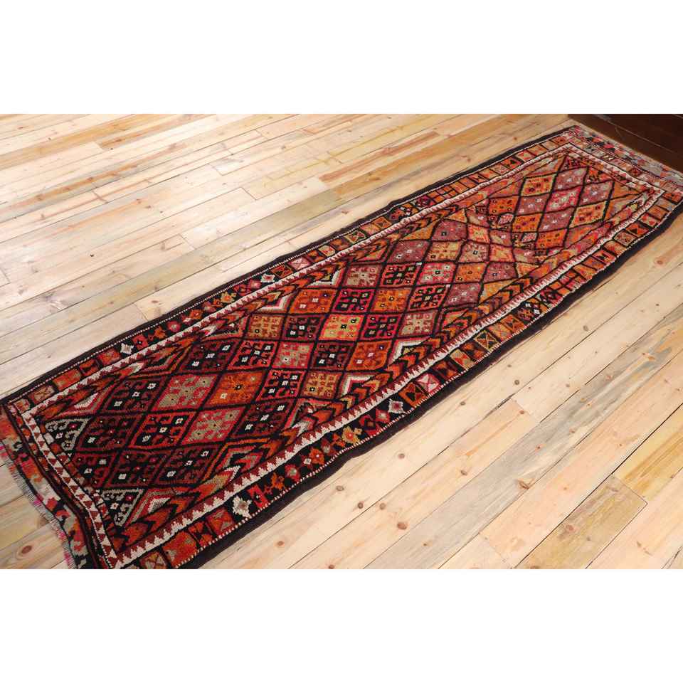Turkish 3.2x11.3 ft Rug, Herki Vintage Rug, Red Ikat Rug Wool