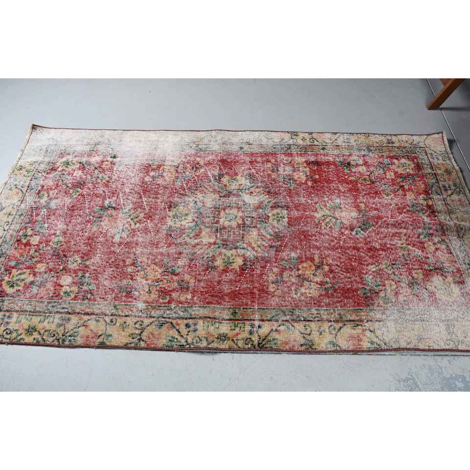 Turkish 3.5x6.6 ft Rug, Vintage Rug, Red Plants & trees Rug Wool