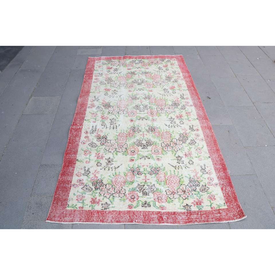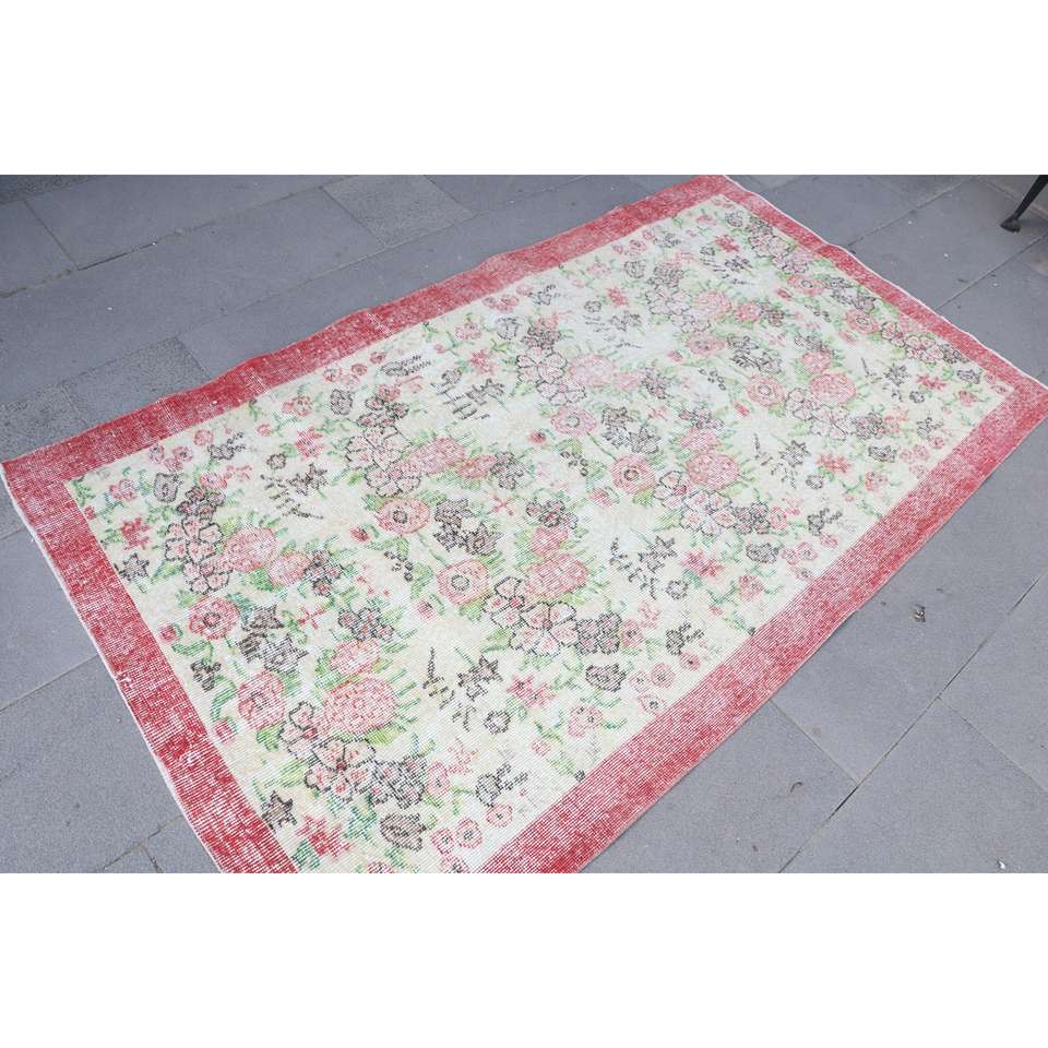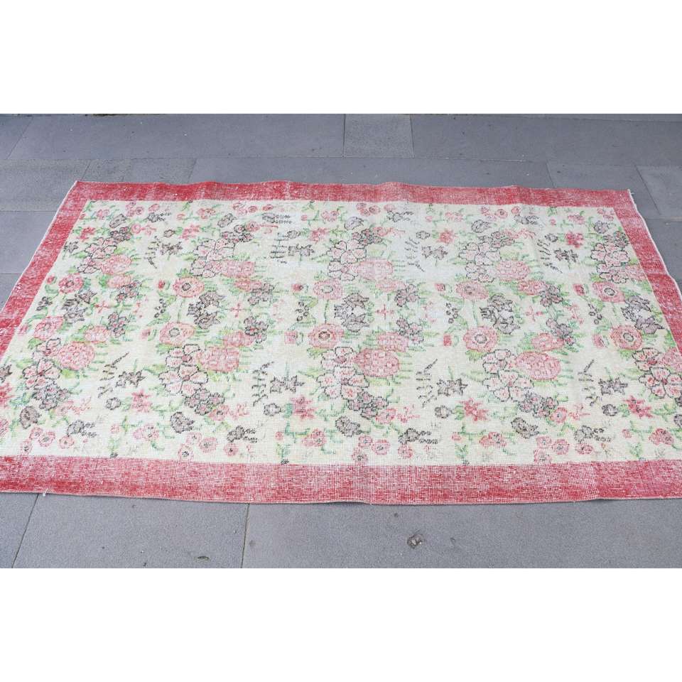 Turkish 3.8x6.7 ft Rug, Area Vintage Rug, Red Pink Abstract Wool Rug