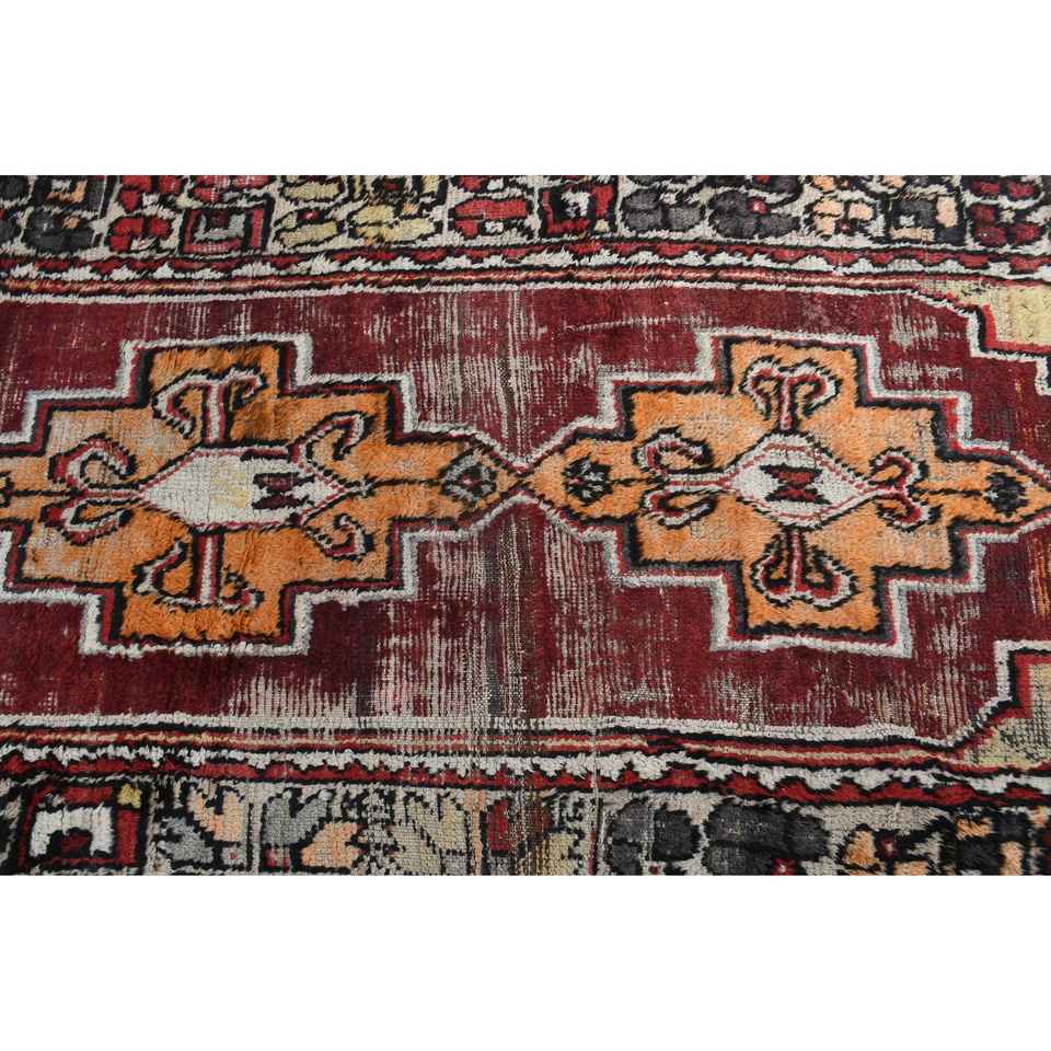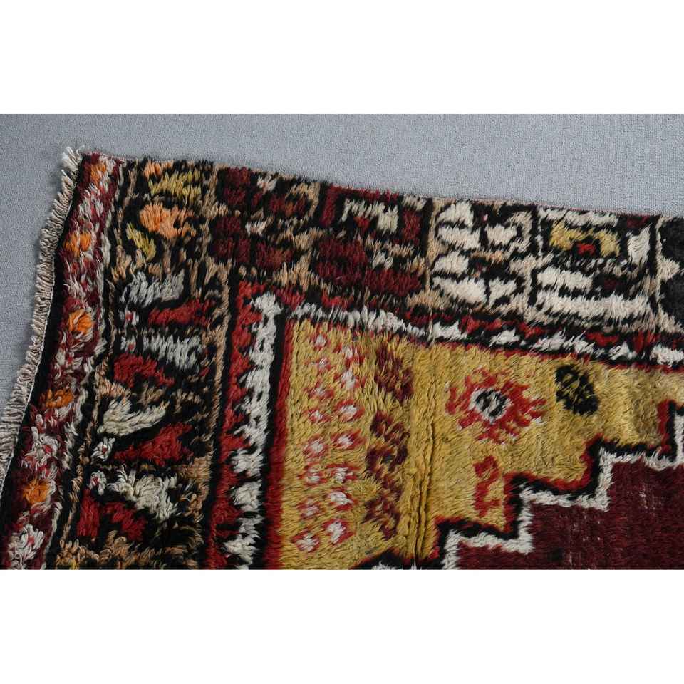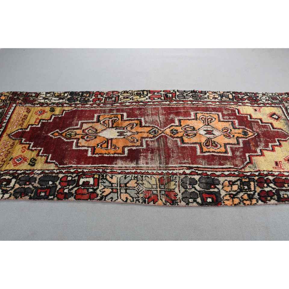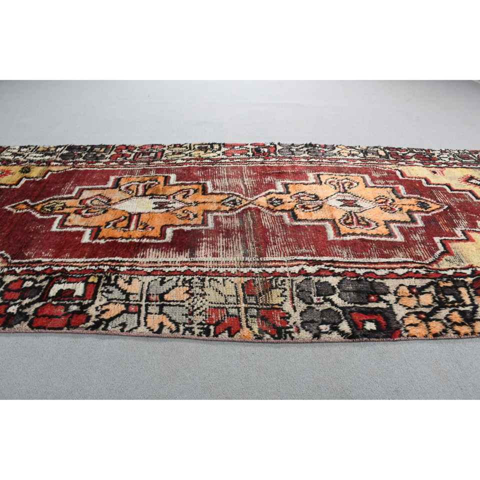 Turkish 3,8x9,7 ft Rug, Runner Vintage Rug, Red Yellow Bordered Rug