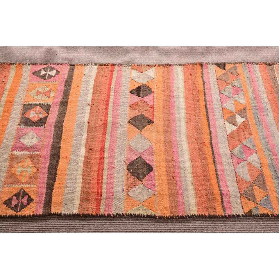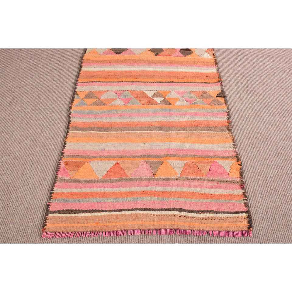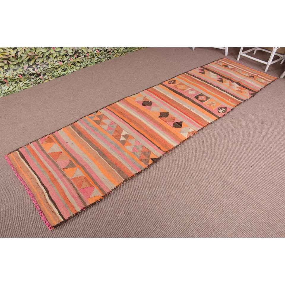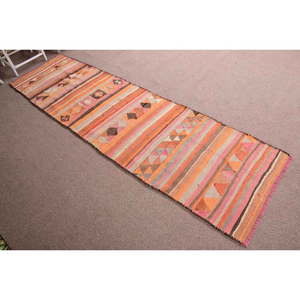 Turkish 3x10.8 ft Rug, Runner Vintage Rug, Orange Pink Moroccan Rug
