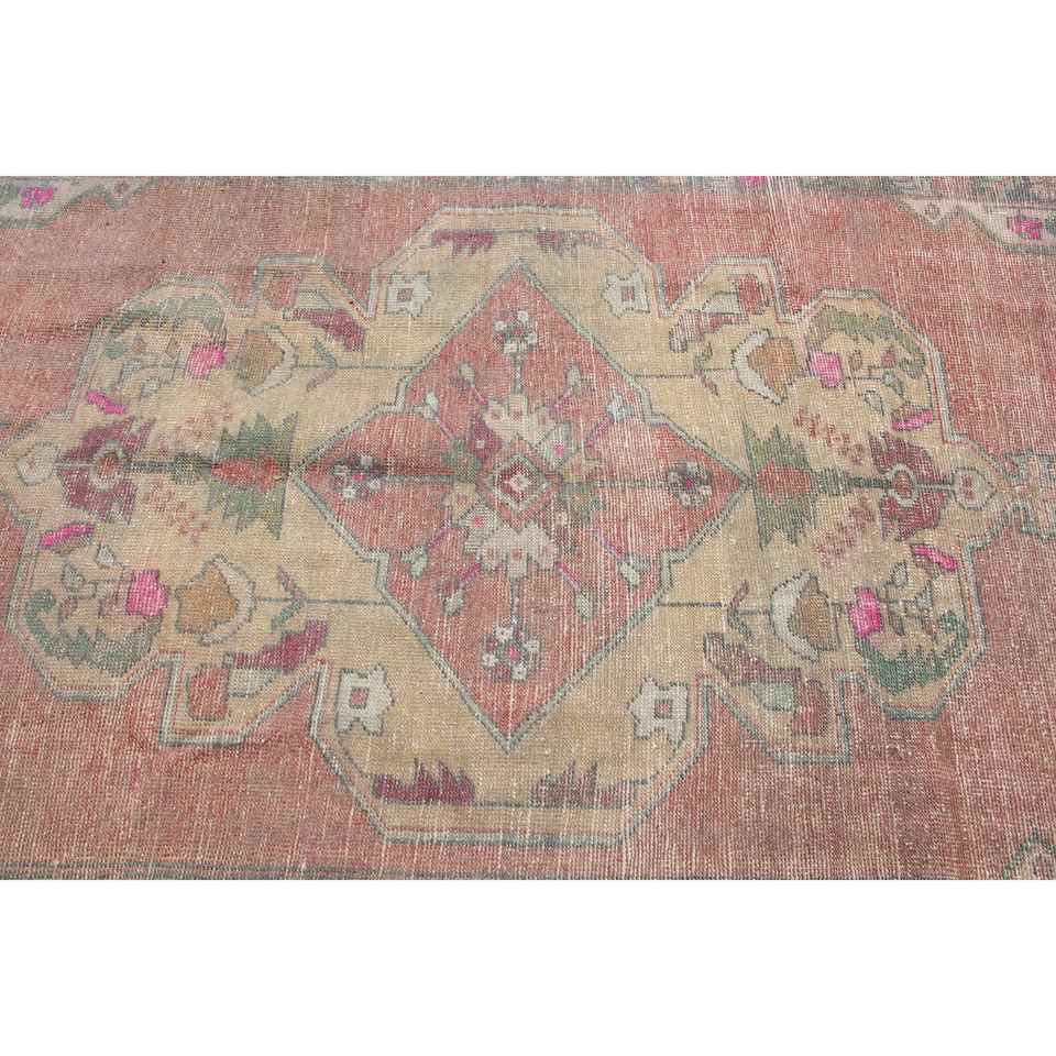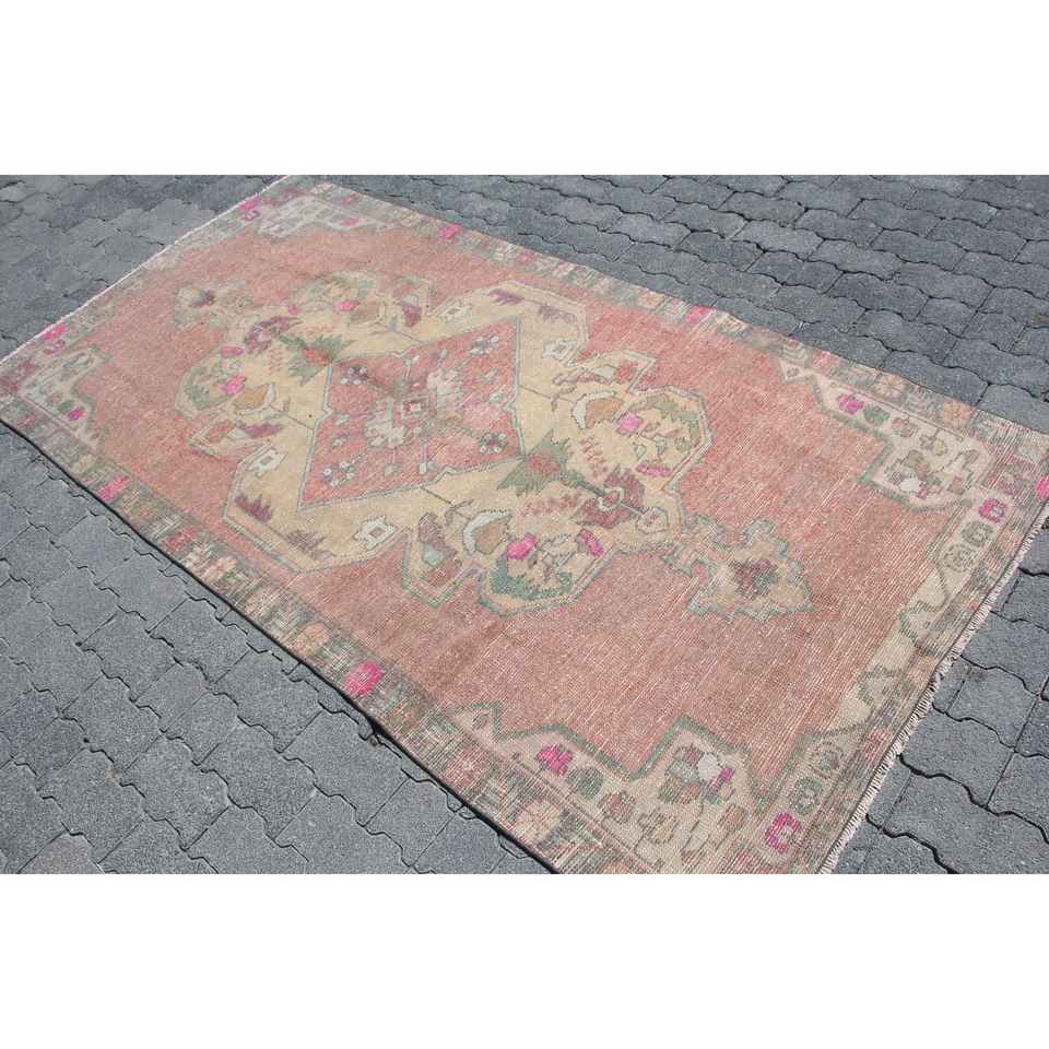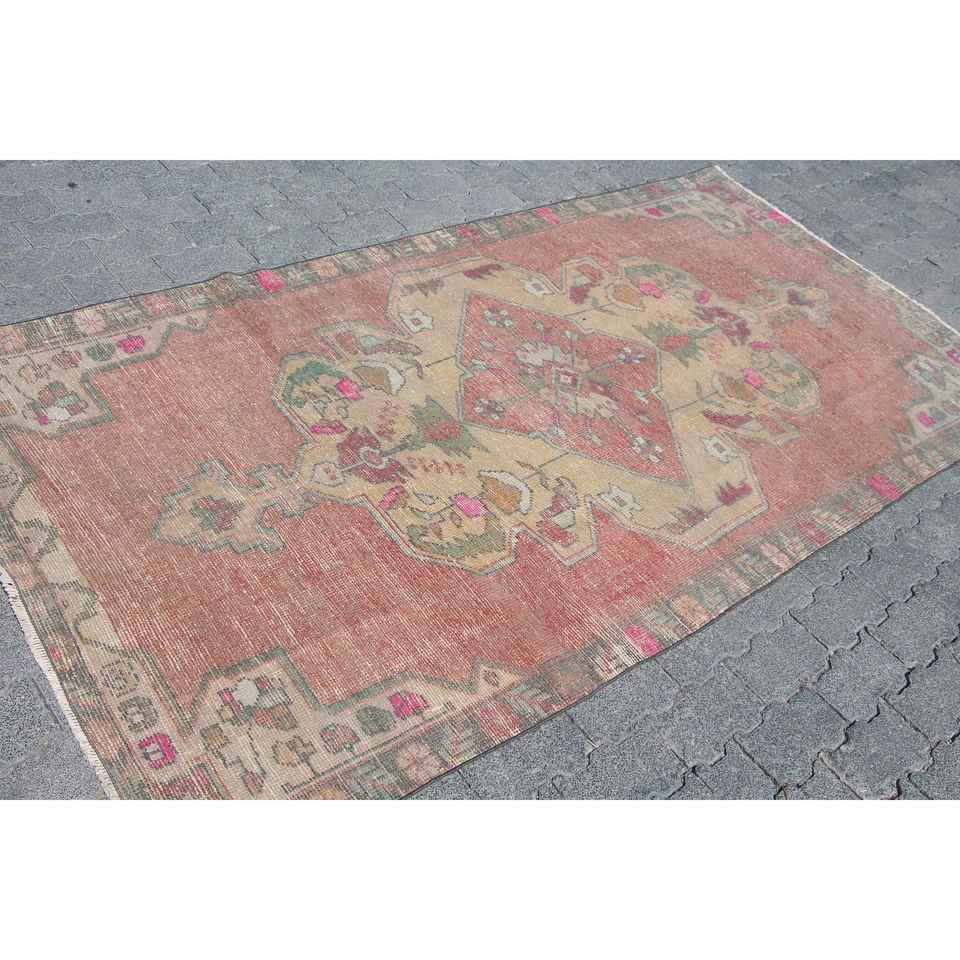 Turkish 4.2x8.1 ft Rug, Area Vintage Rug, Red Pink Patchwork Wool Rug