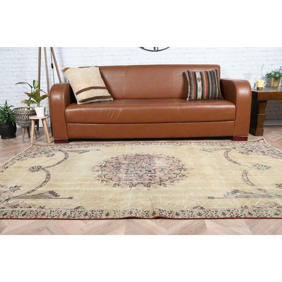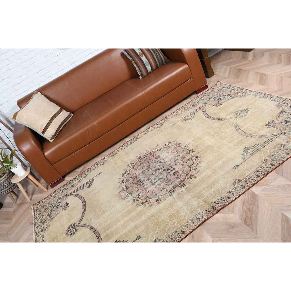 Turkish 4.3x7.7 ft Rug, Vintage Rug, Brown Oriental Wool Rug