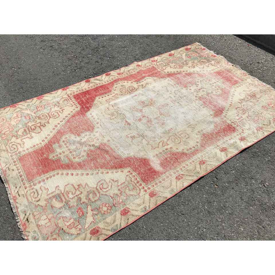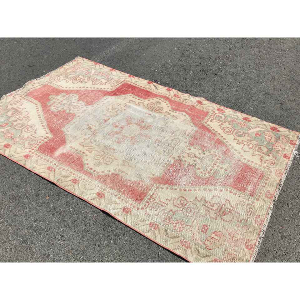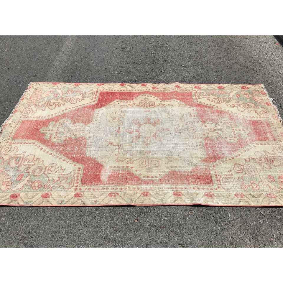 Turkish 4.3x7 ft Rug, Area Vintage Rug, Red Plants & trees Wool Rug