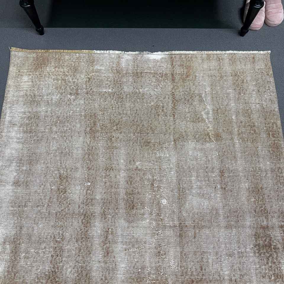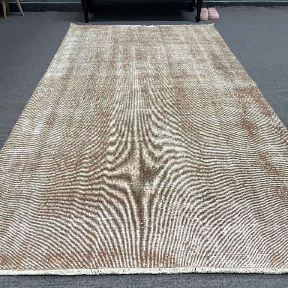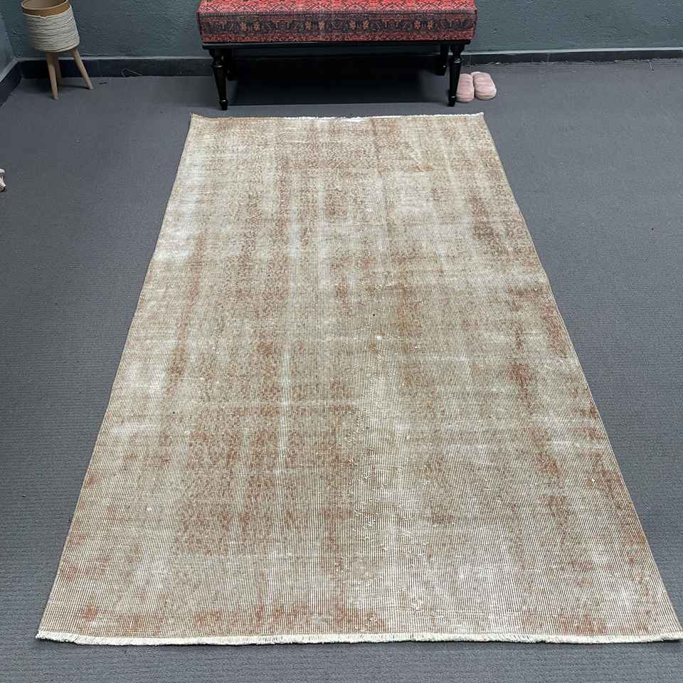 Turkish 4.4x7.9 ft Rug, Vintage Rug, Brown Striped Wool Rug