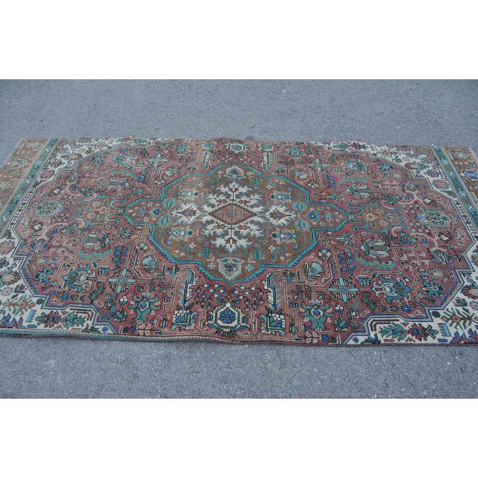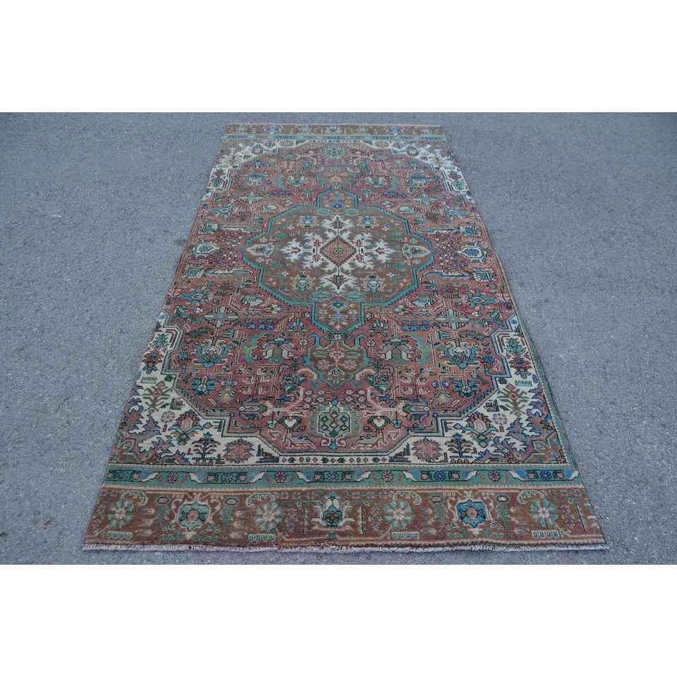 Turkish 4.5x9.2 ft Rug, Vintage Rug, Brown Southwestern Rug Wool