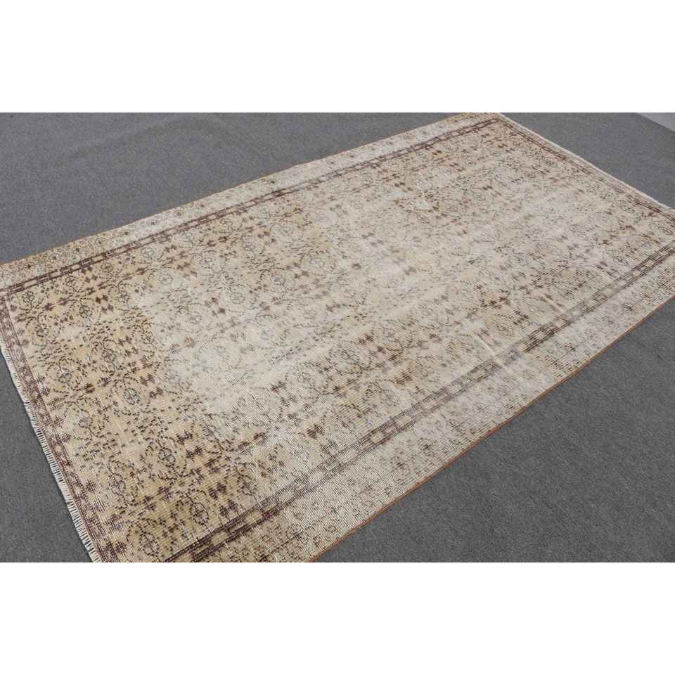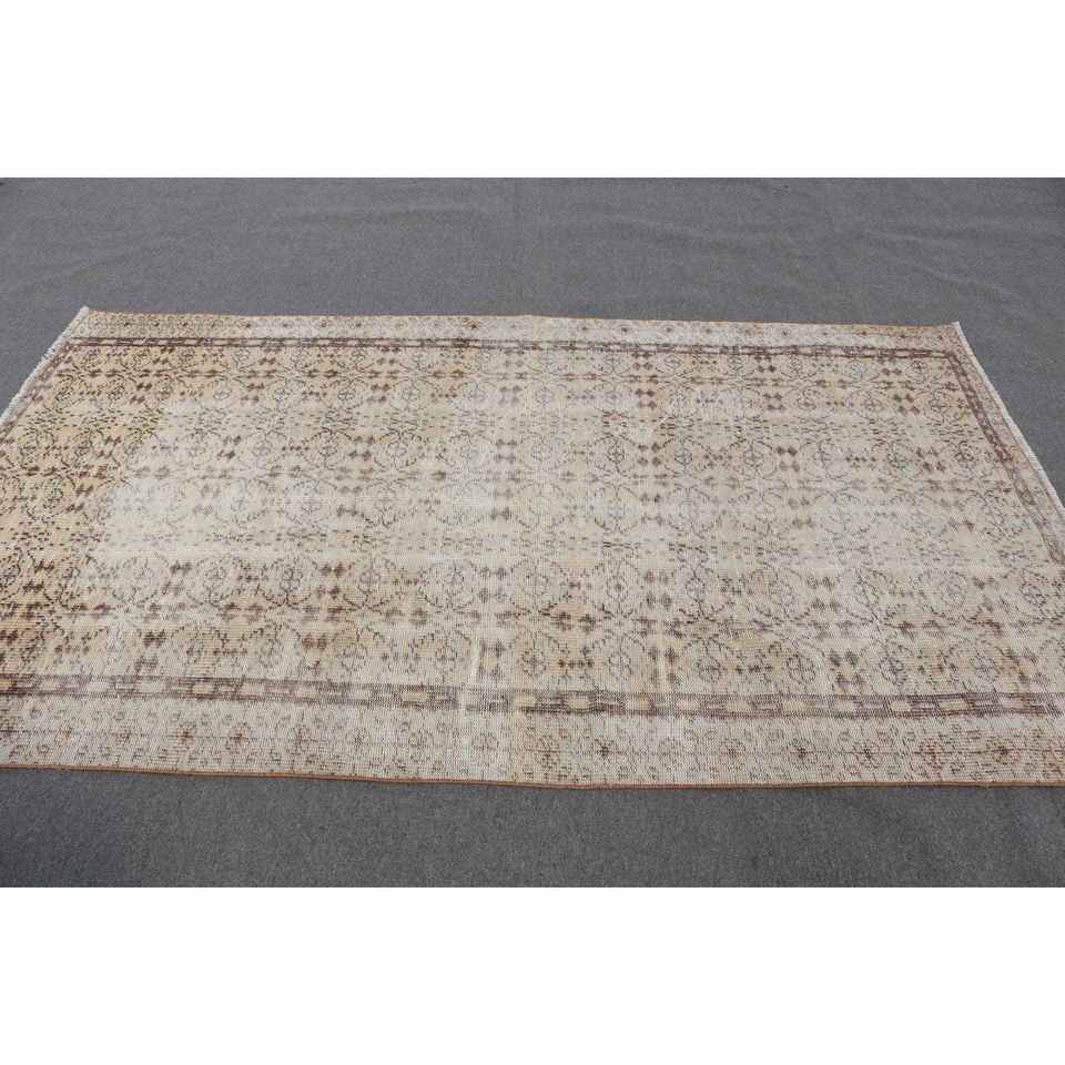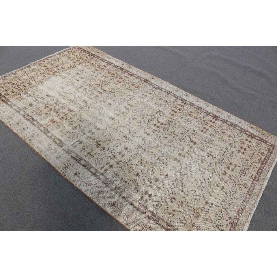 Turkish 4.8x8.1 ft Wool Rug Vintage Patchwork Area Rug with Latex Backing Eco-Friendly Brown Ombr Rug