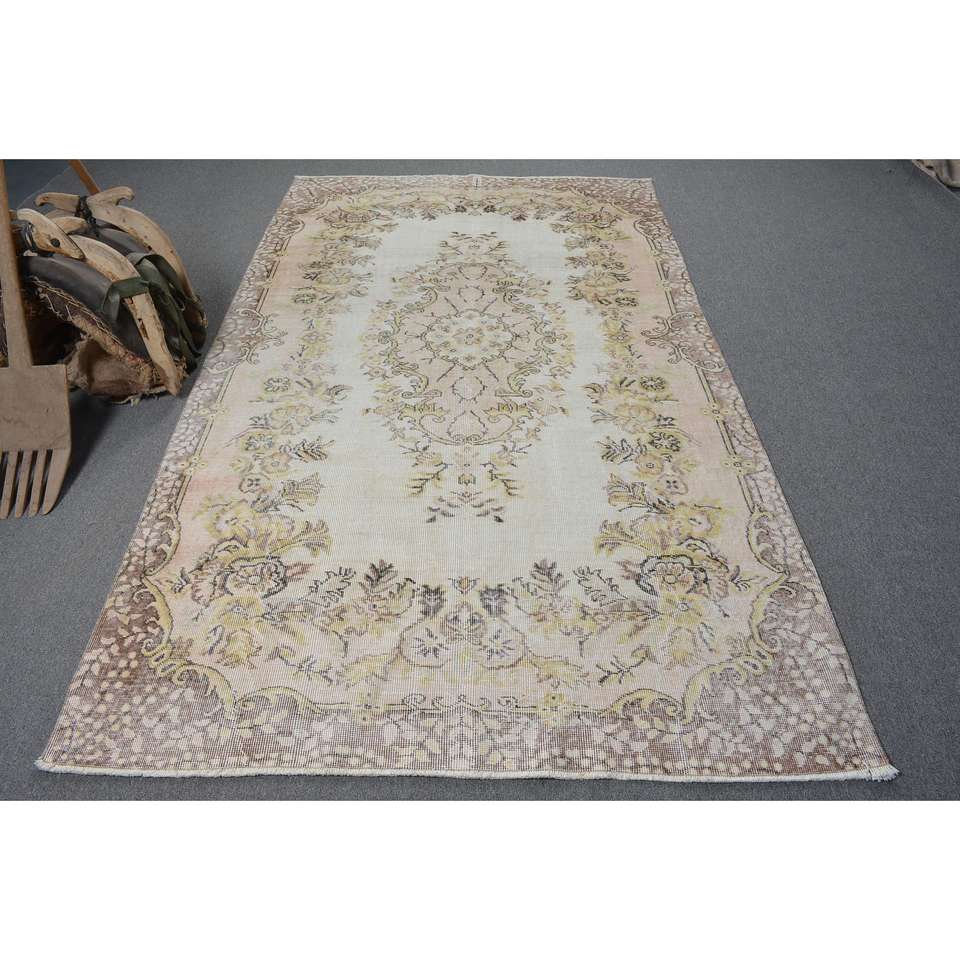 Turkish 5.2x8.7 ft Rug, Vintage Rug, Brown Southwestern Rug Wool