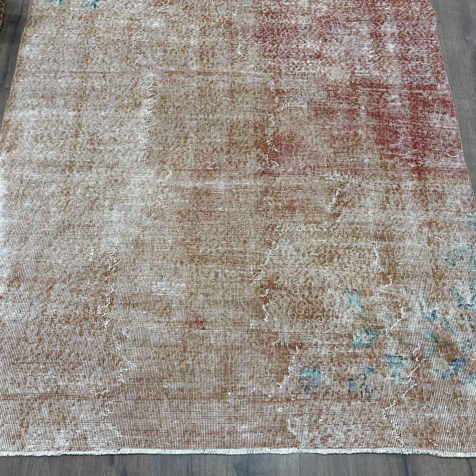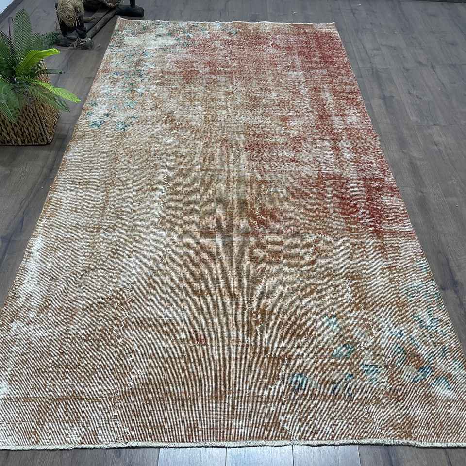 Turkish 5.2x9.8 ft Rug, Large Vintage Rug, Brown Red Camouflage Wool Rug