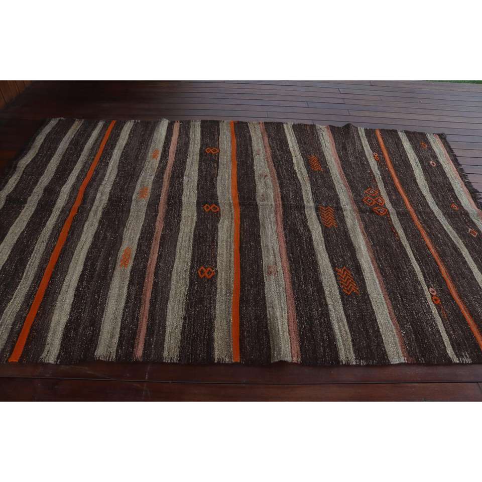Turkish 5.5x8.4 ft Rug, Kilim Vintage Rug, Brown Camouflage Rug Wool
