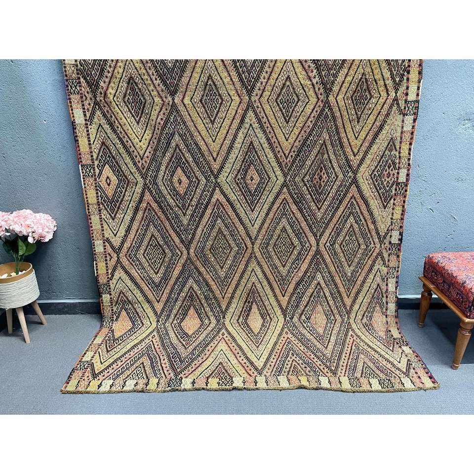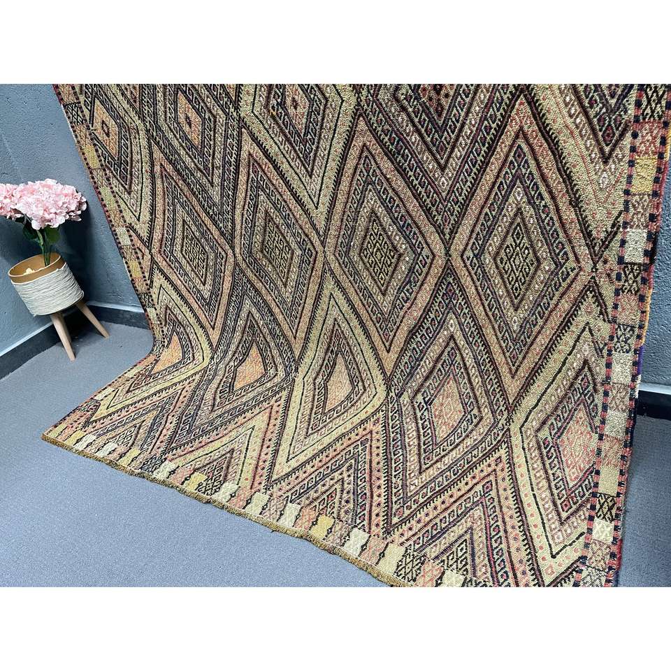 Turkish 5.8x8 ft Rug, Large Vintage Rug, Brown Black Oriental Wool Rug