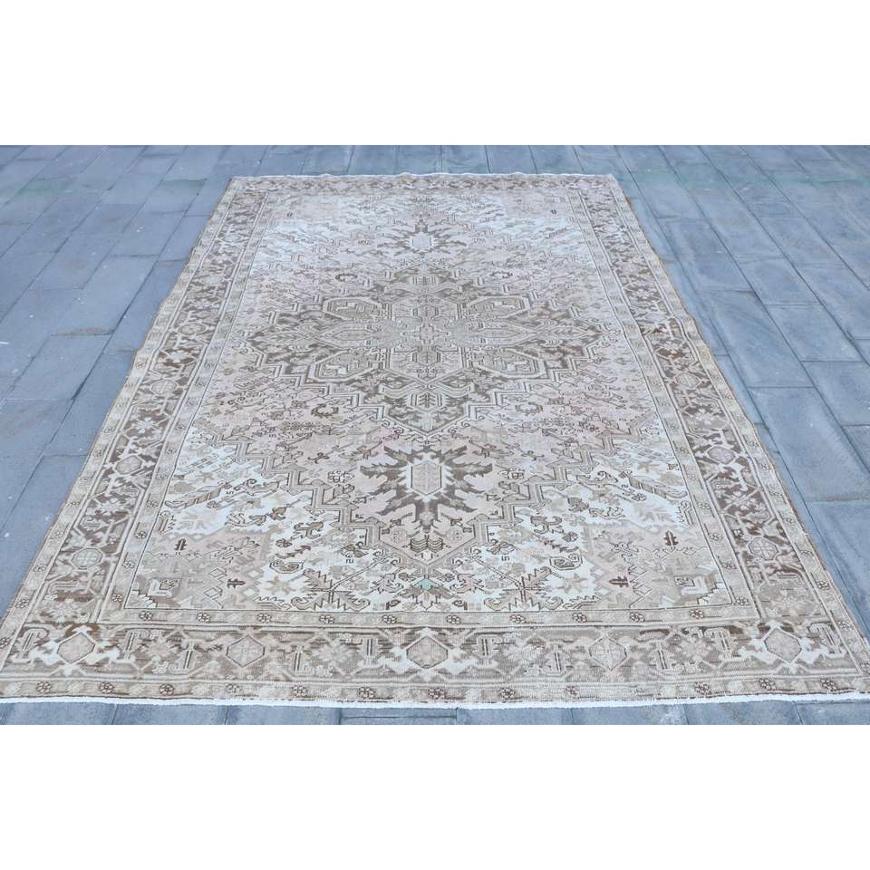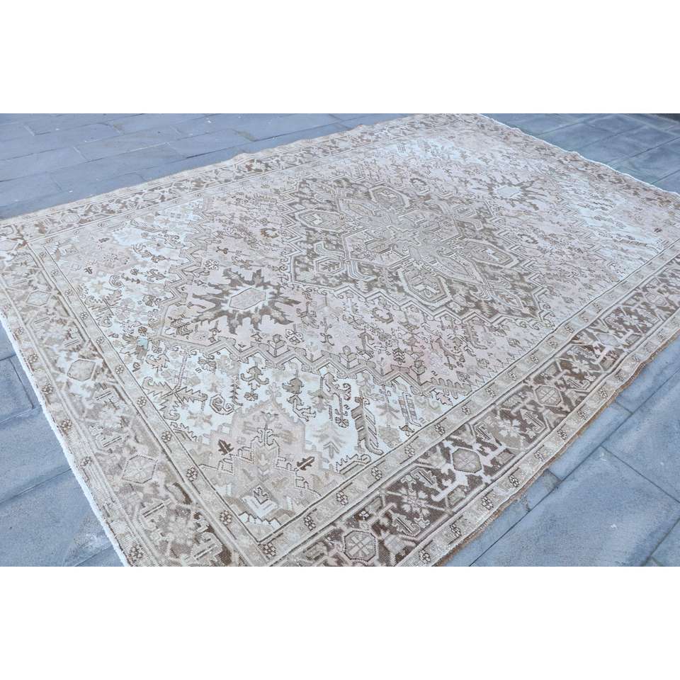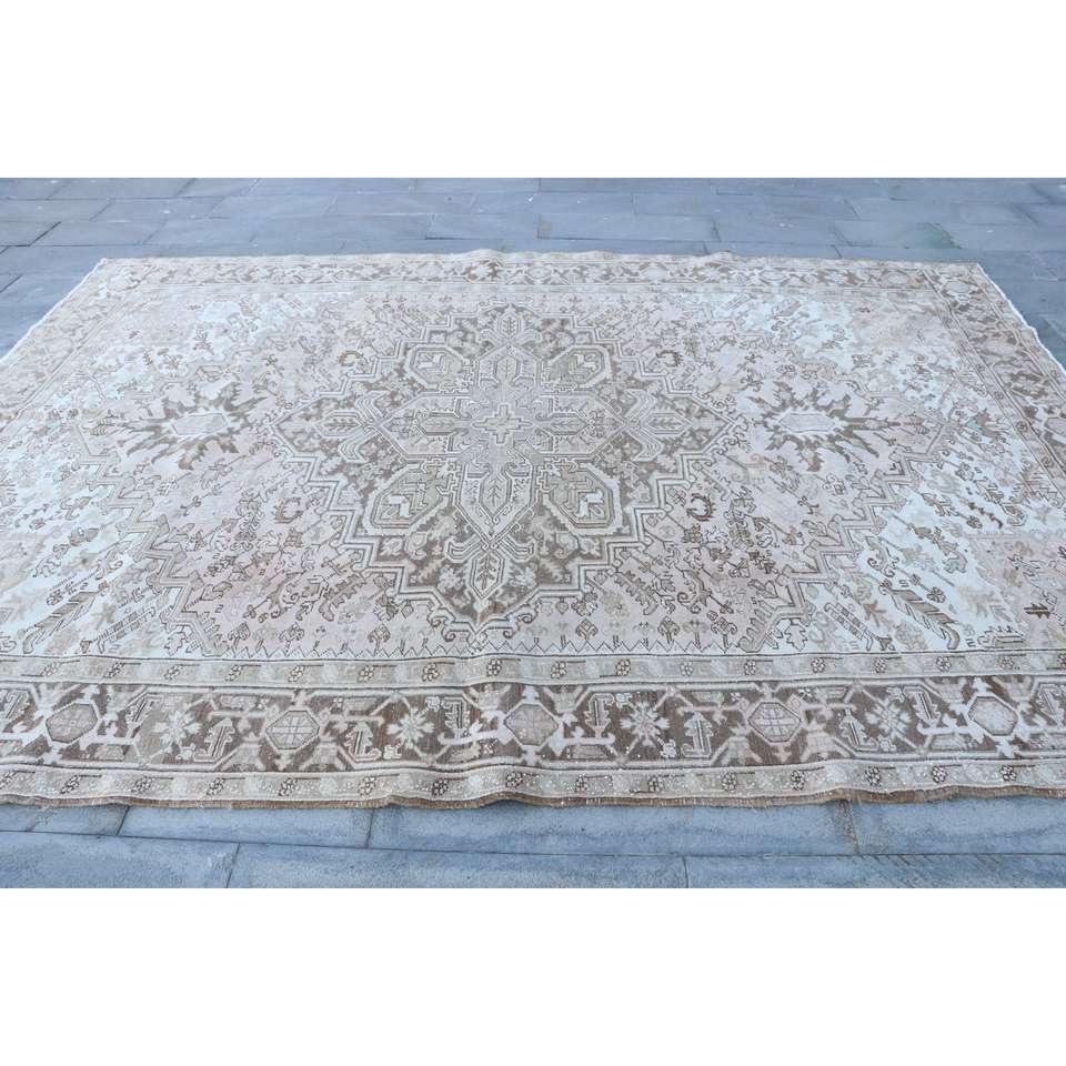 Turkish 8.3x11.3 ft Wool Patchwork Rug Eco-Friendly Vintage Oversize Brown Bordered Latex Backing Rug