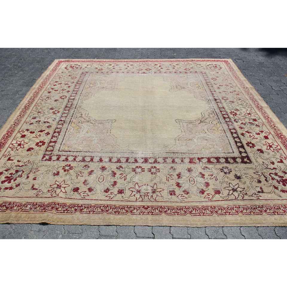 Turkish 9.2x9.6 ft Rug, Vintage Rug, Red Solid Wool Rug