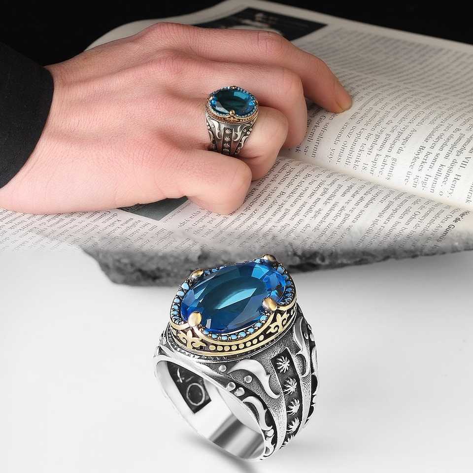 Turkish 925 Sterling Silver Men's Ring Ottoman Style Jewelry From Turkey Natural Agate Stone Fine Rings Azuris VALKH1262