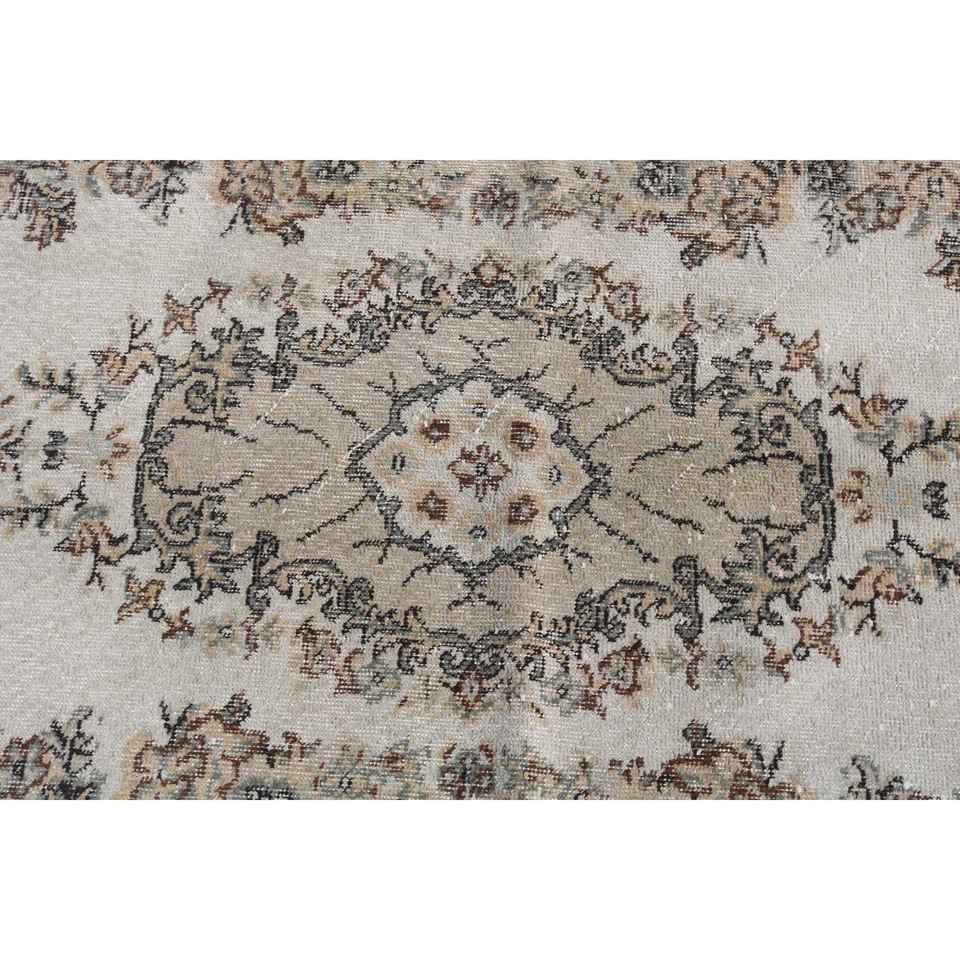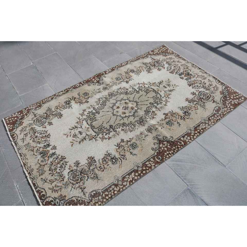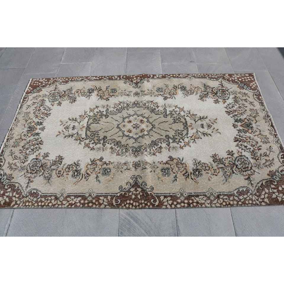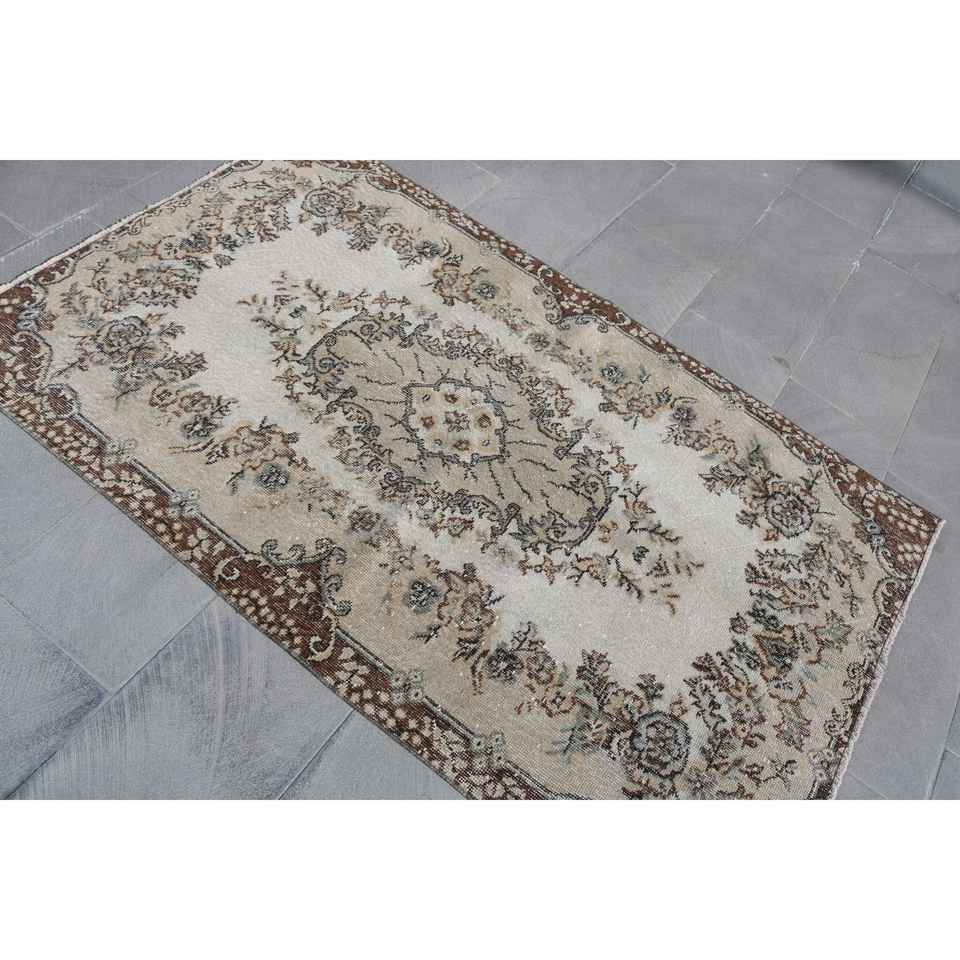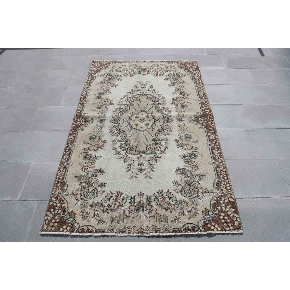 Turkish Accent Rug 3.7x6 ft, Vintage Brown Polka dot Wool Rug