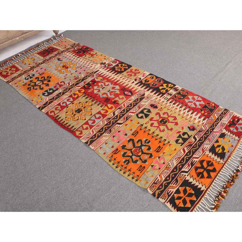 Turkish Area Rug 3.3x7.5 ft, Red Floral Vintage Wool Rug