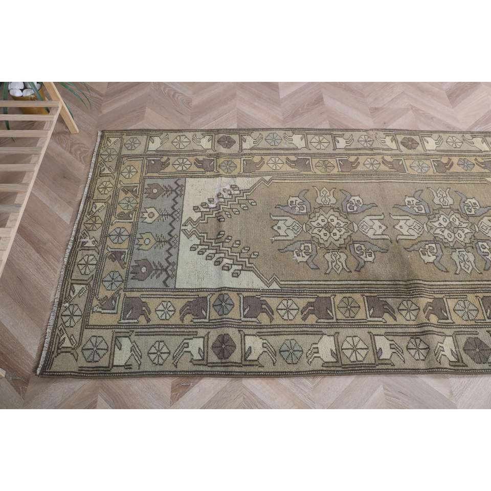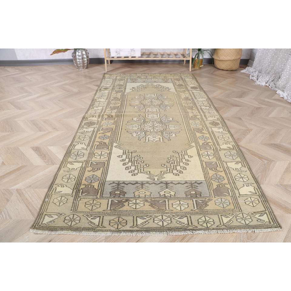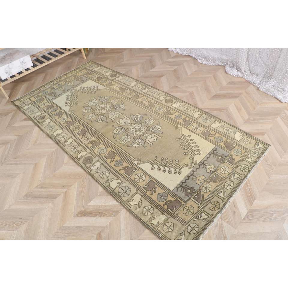 Turkish Area Rug 3.4x7.1 ft (104x215 cm), Brown Check Vintage Rug