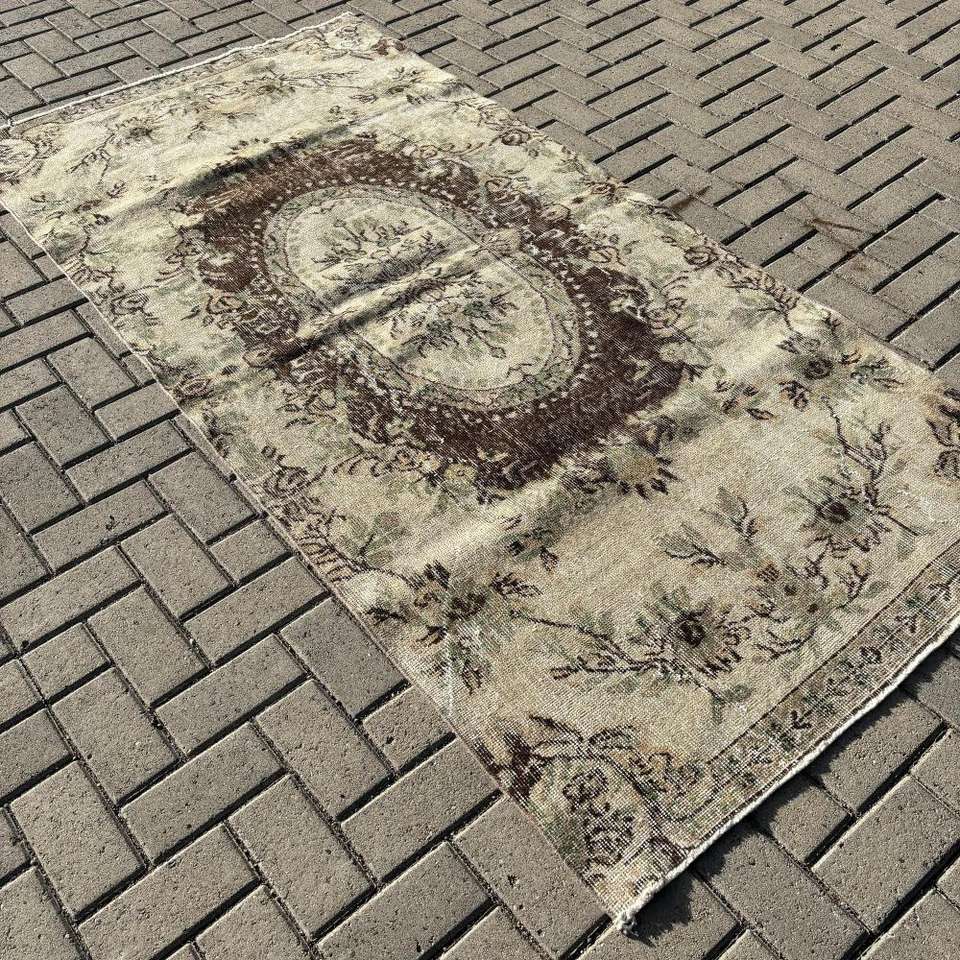 Turkish Area Rug 3.7x7.5 ft (112x229 cm), Vintage Brown Polka dot Rug