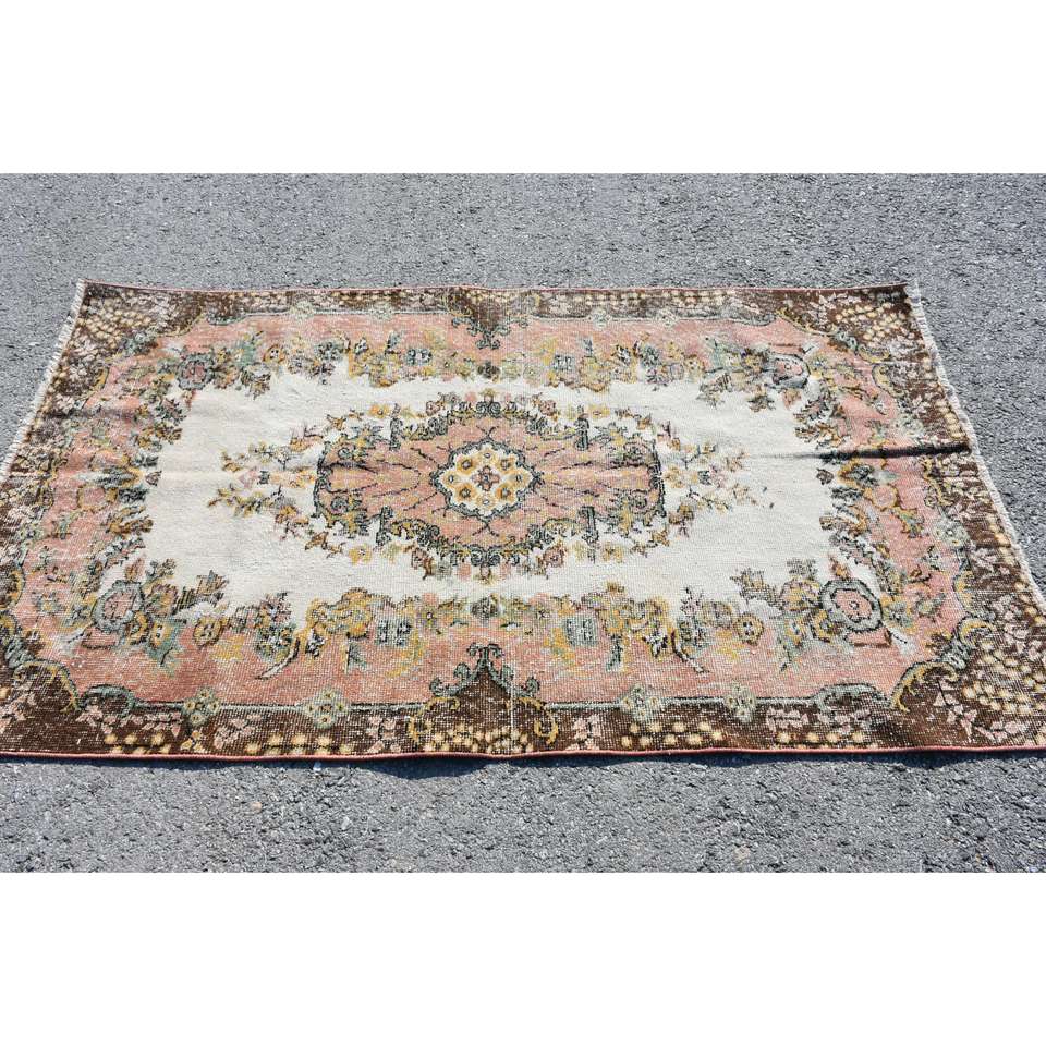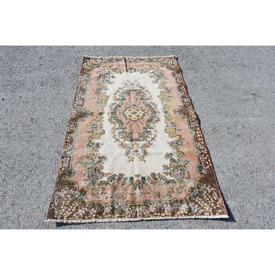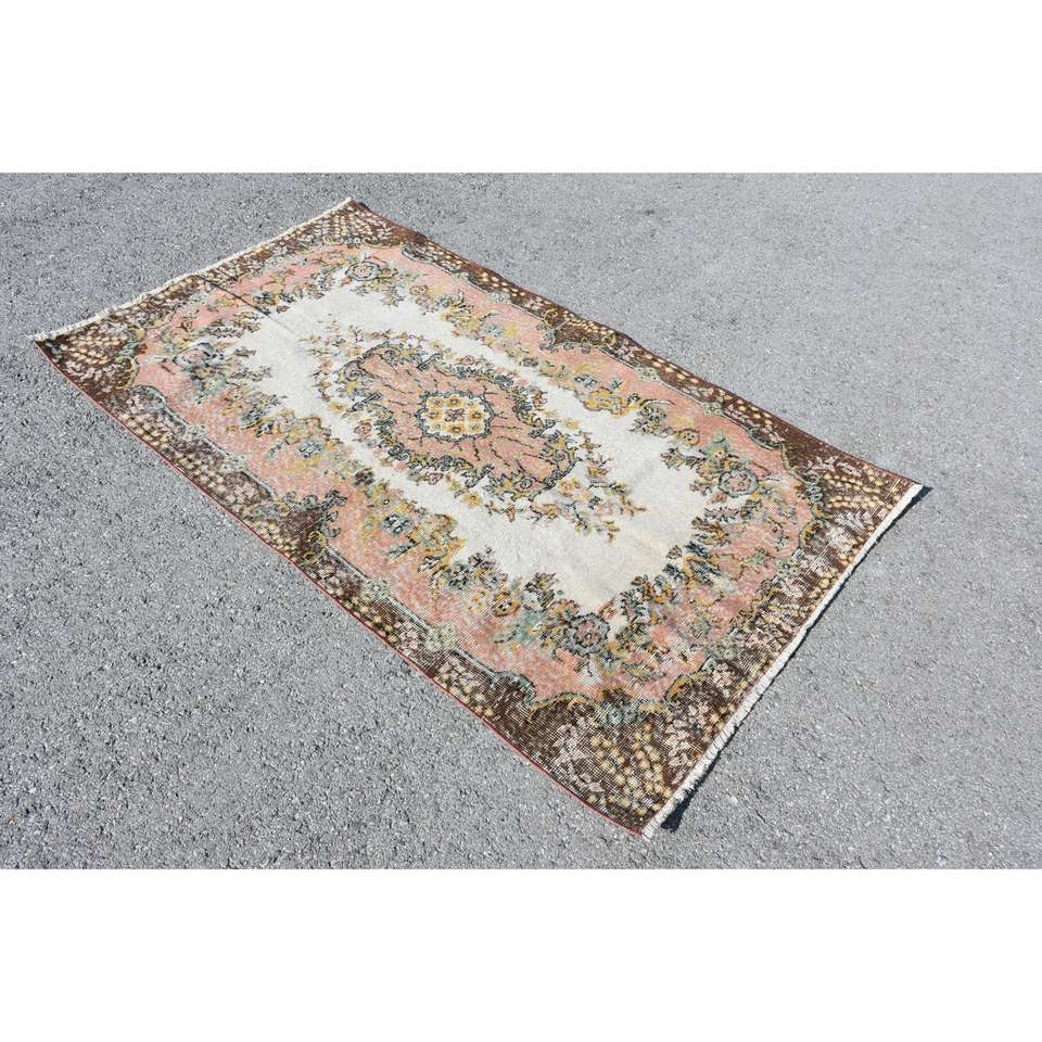 Turkish Area Rug, 3.8x6.5 ft Vintage Rug, Brown Ikat Wool Rug