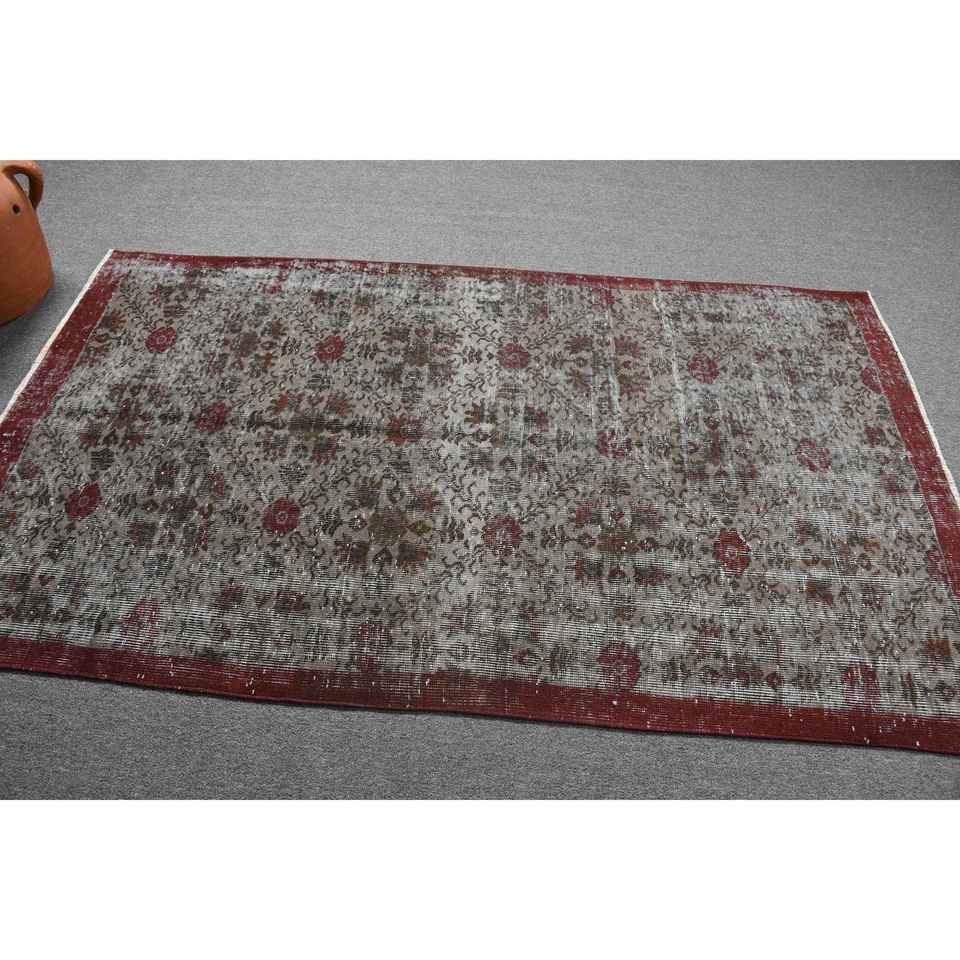 Turkish Area Rug 3.9x6.8 ft, Vintage Red Striped Wool Rug