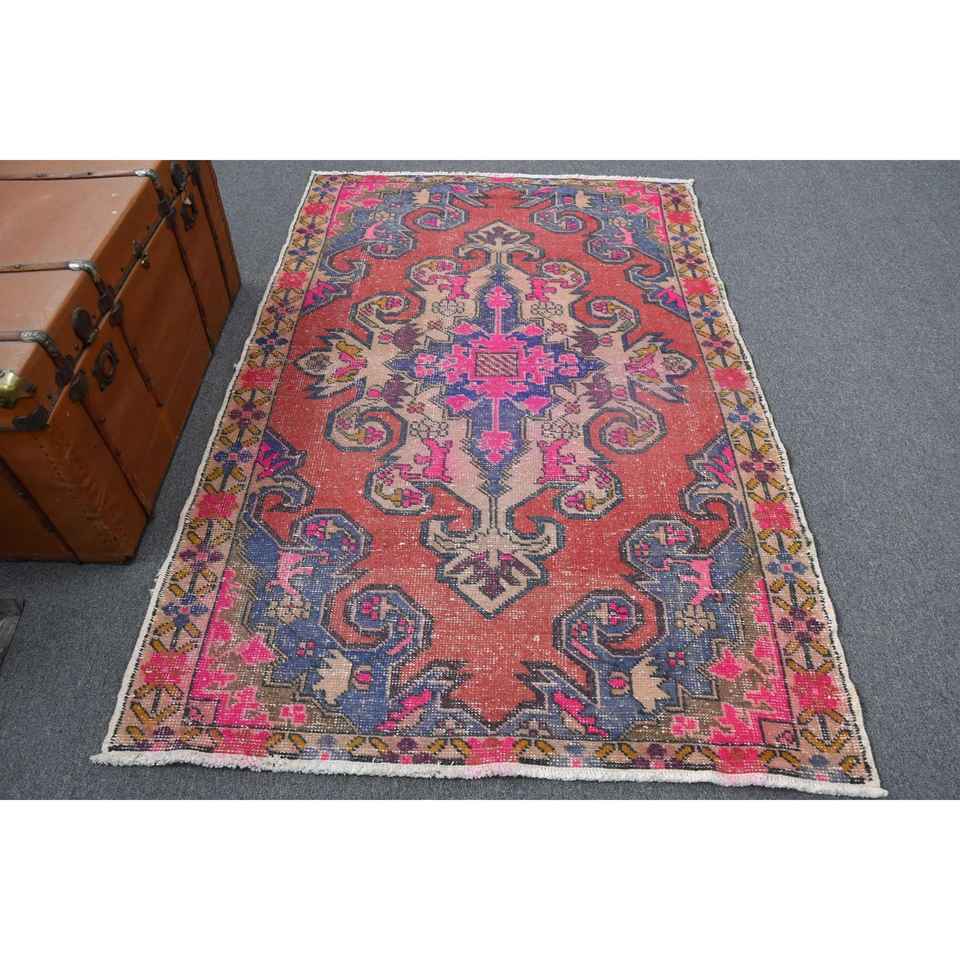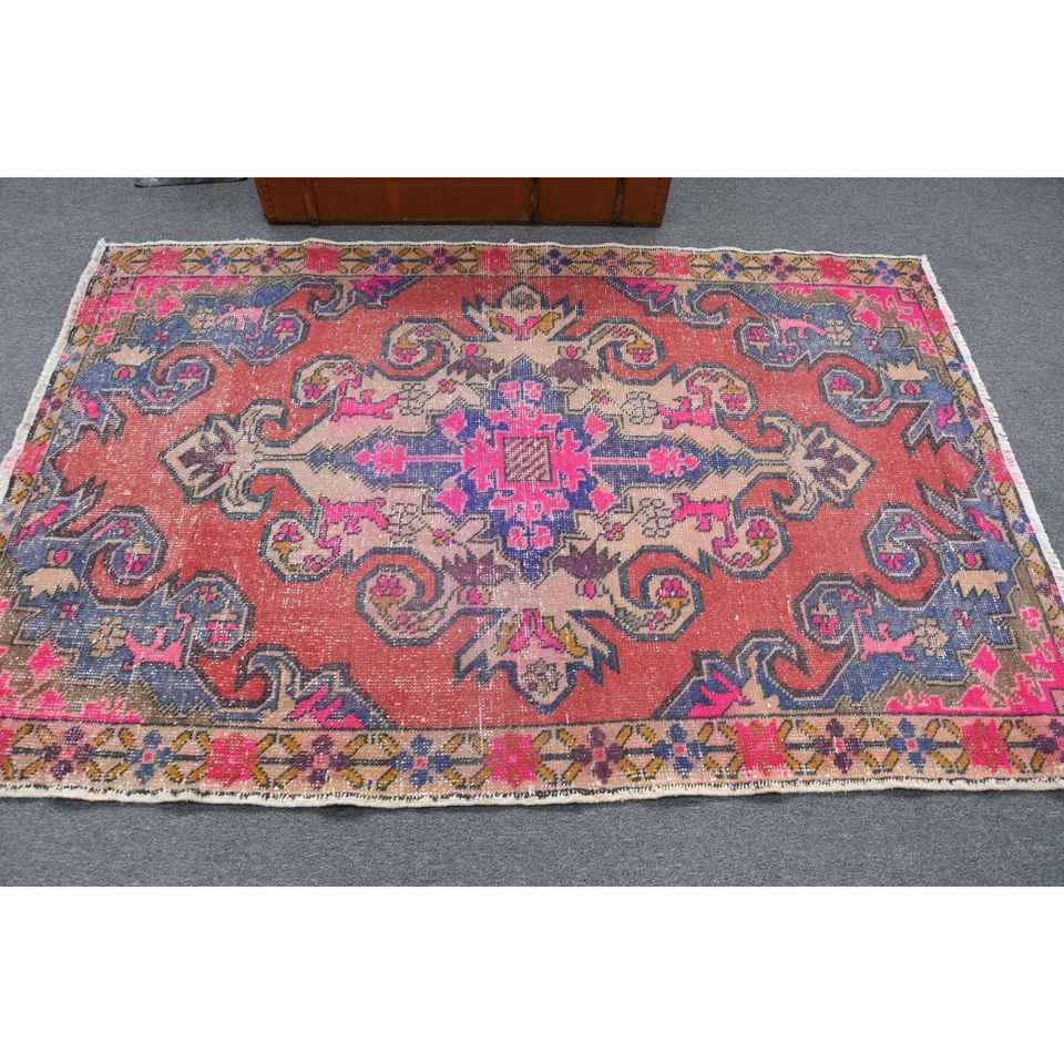Turkish Area Rug, 4.3x6.6 ft Vintage Rug, Red Wool Rug