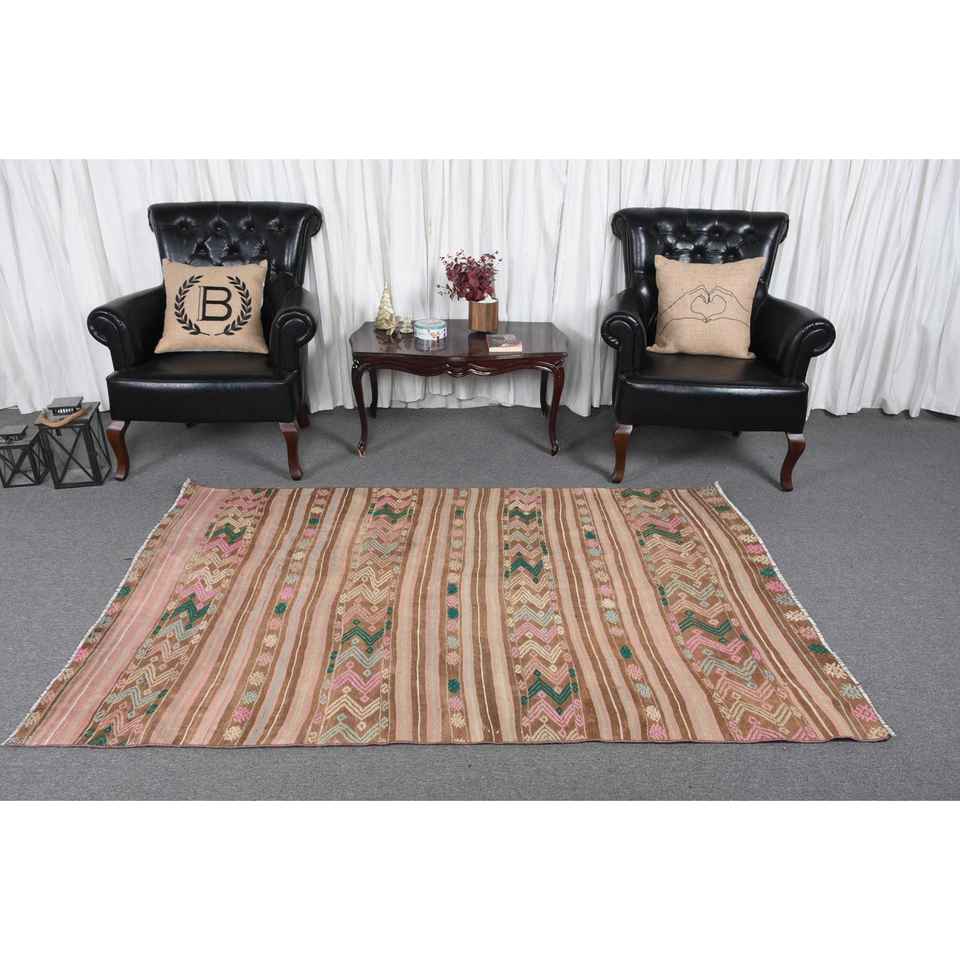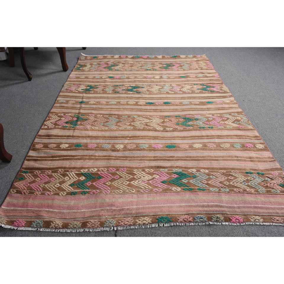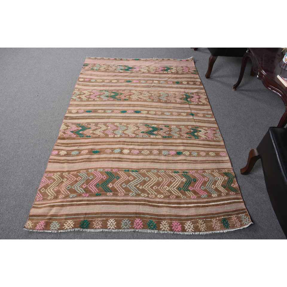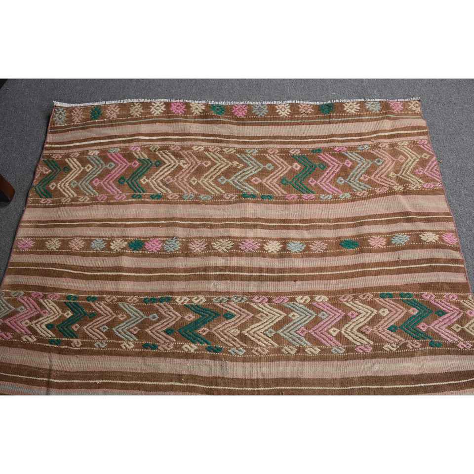 Turkish Area Rug 4.3x6.8 ft, Brown Oriental Vintage Wool Rug