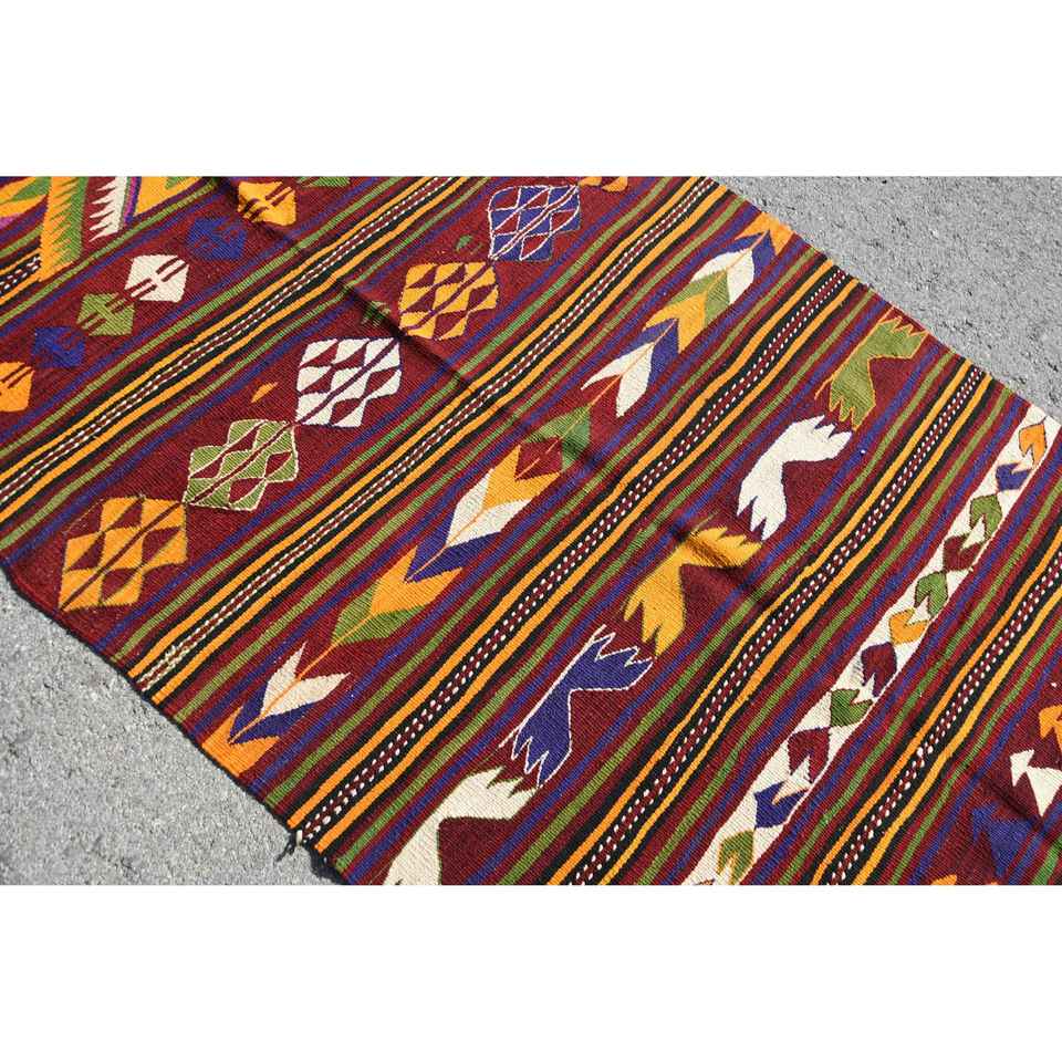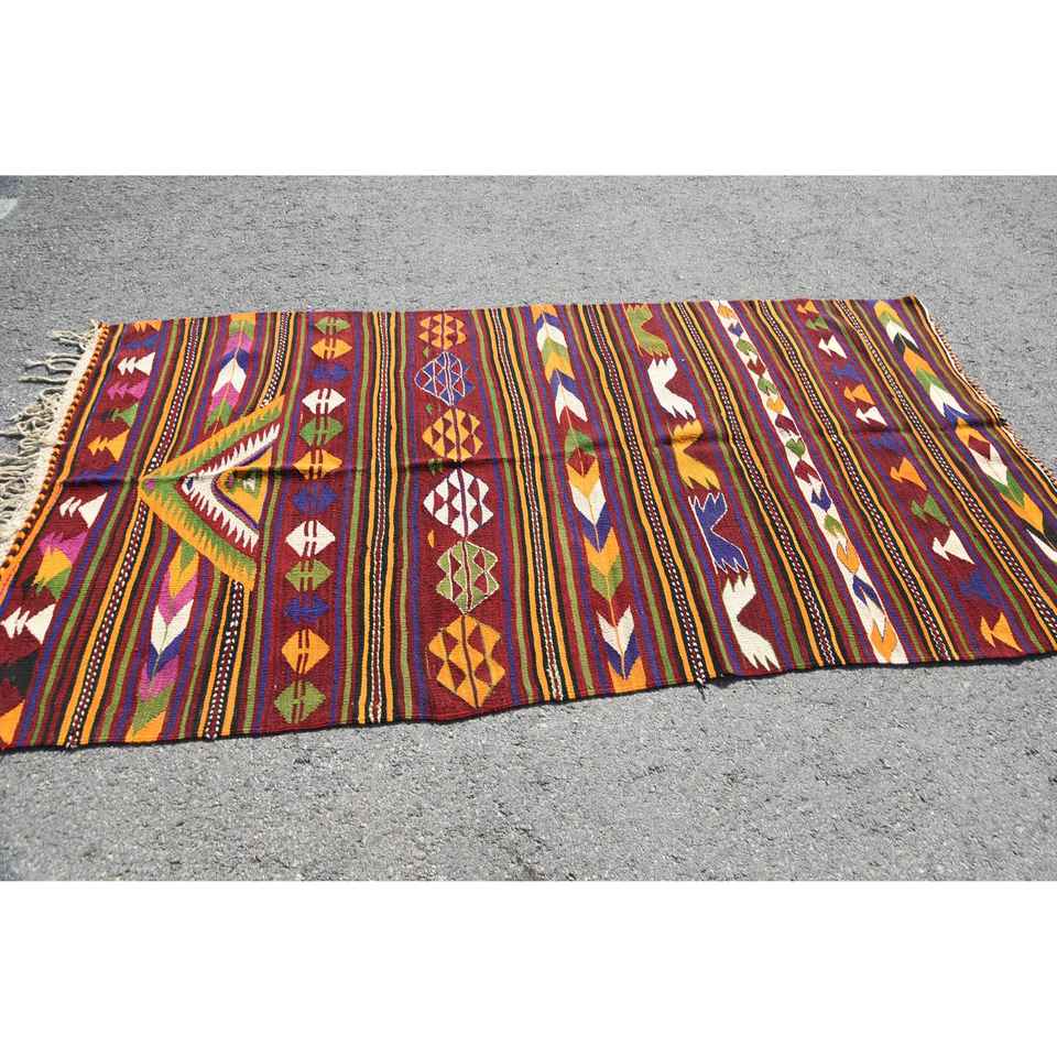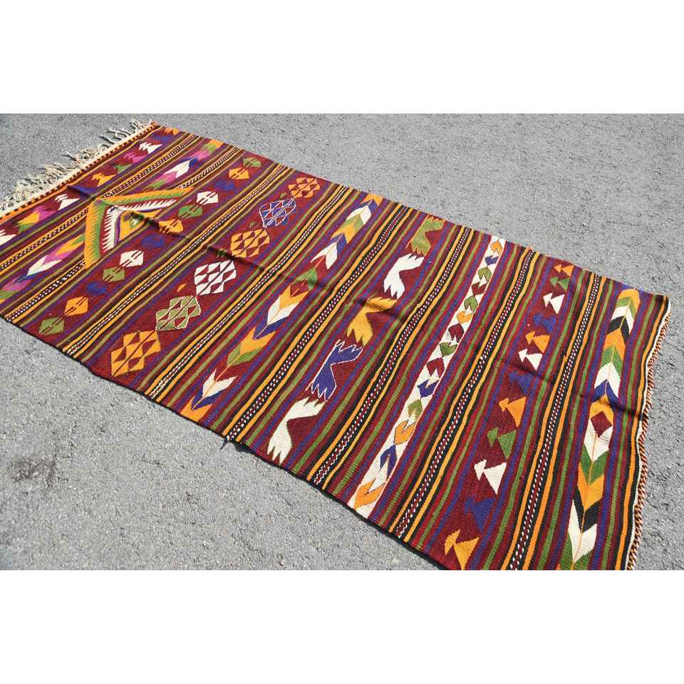 Turkish Area Rug, 4.3x8.6 ft Vintage Rug, Red Polka dot Wool Rug