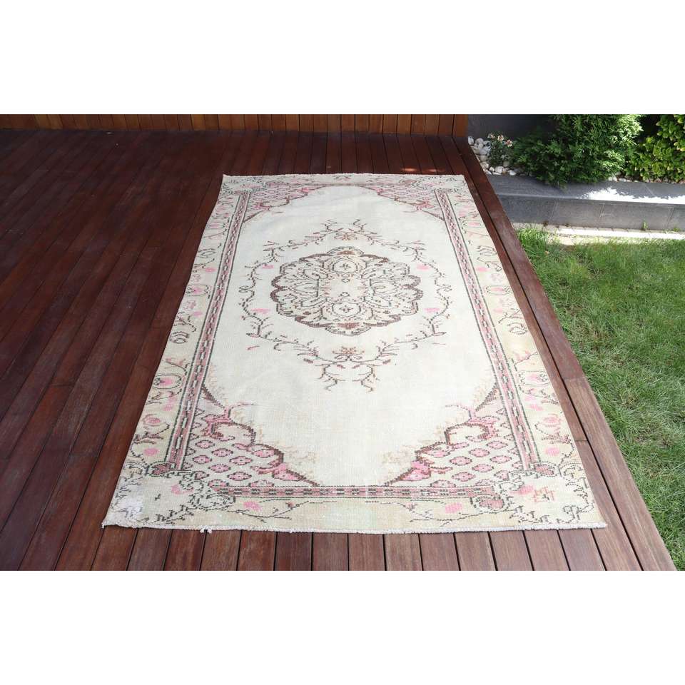 Turkish Area Rug 4.4x7.4 ft (135x226 cm), Vintage Brown Patchwork Rug