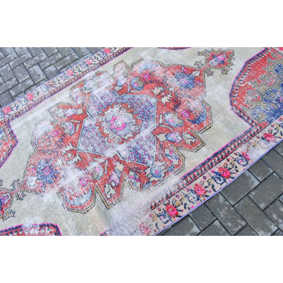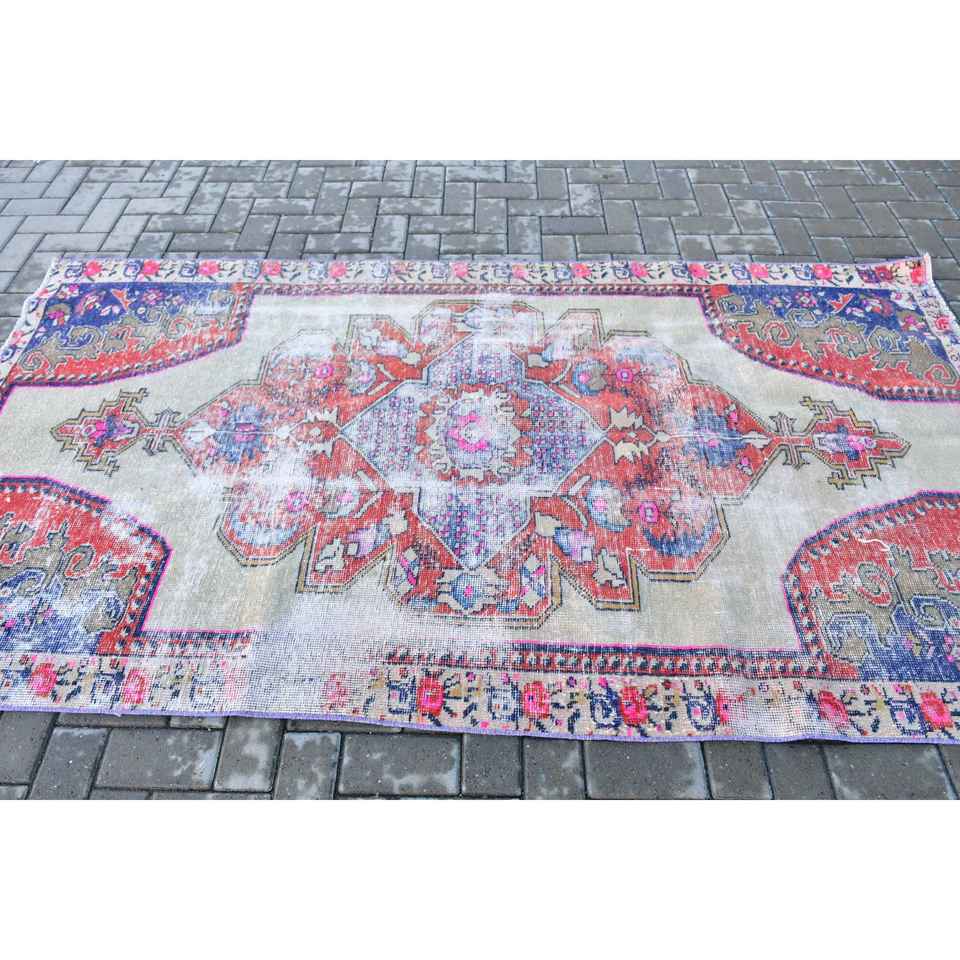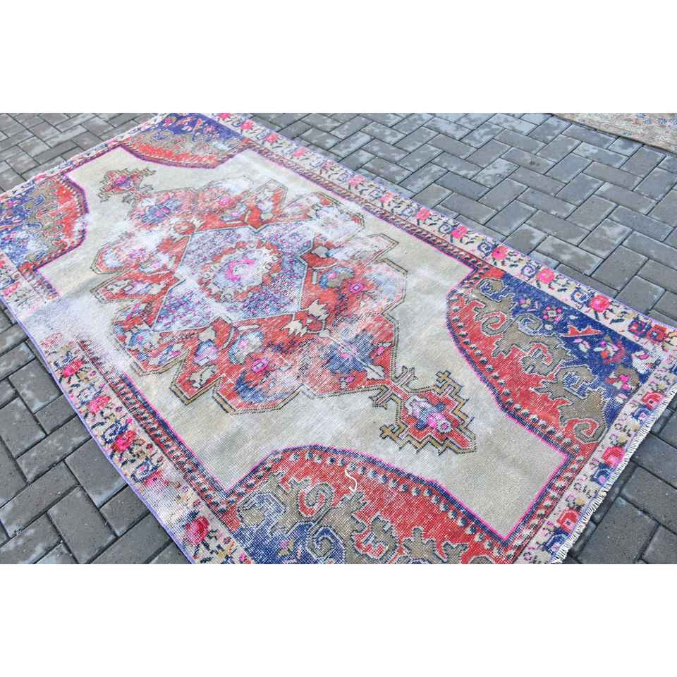Turkish Area Rug 4.4x8.2 ft, Red Blue Ombr Rug Wool