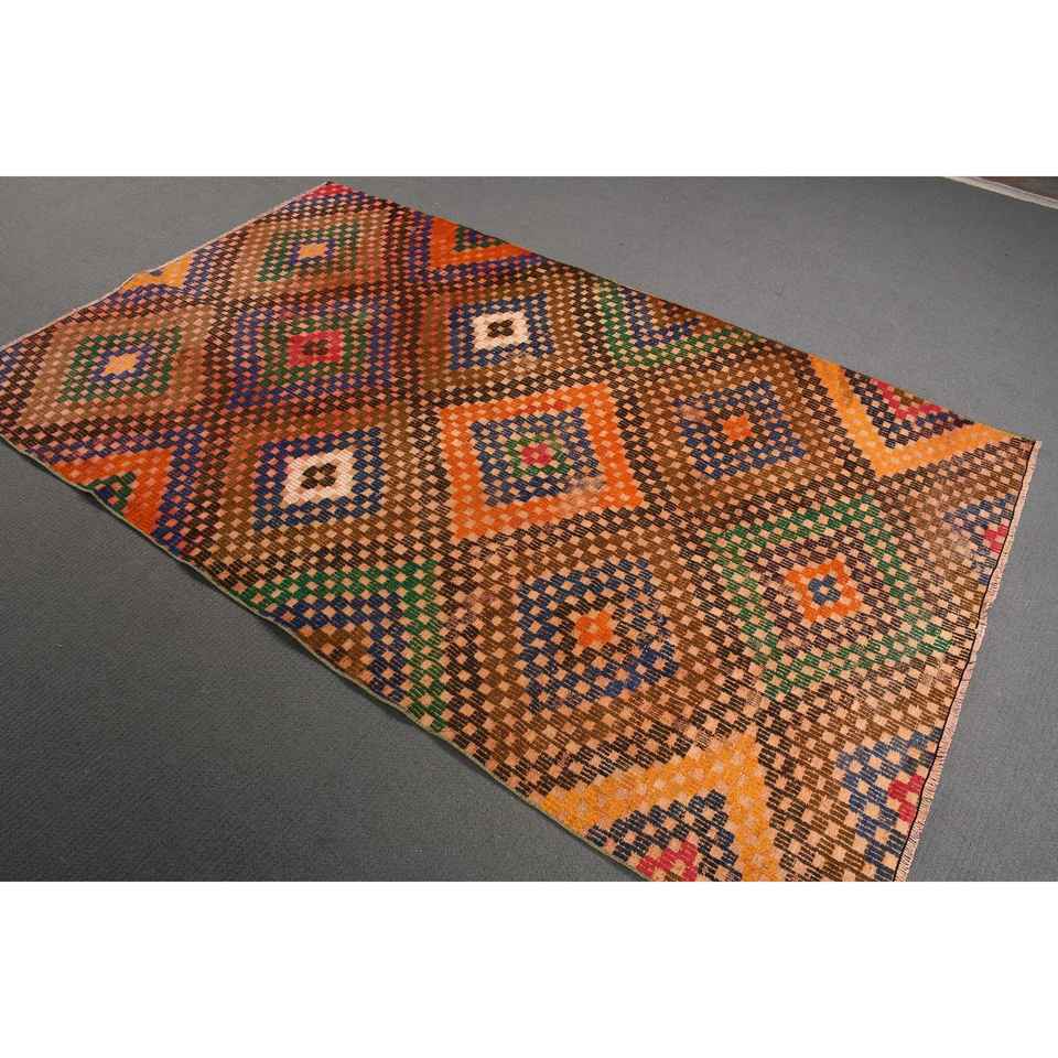 Turkish Area Rug 4.6x7.4 ft, Brown Orange Floral Rug Wool