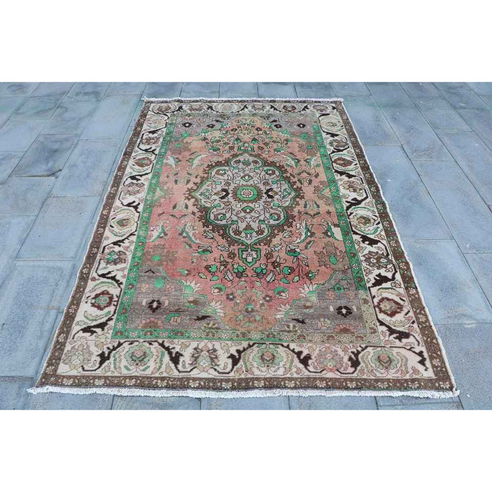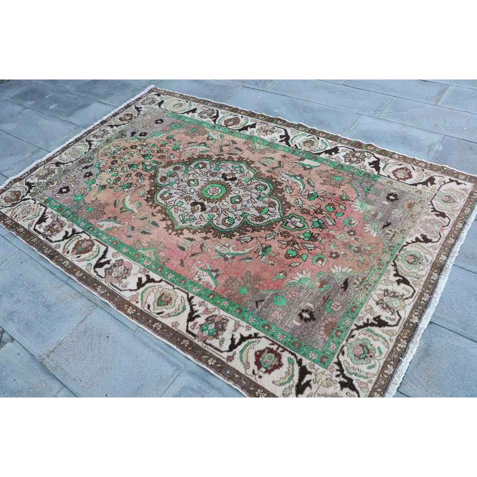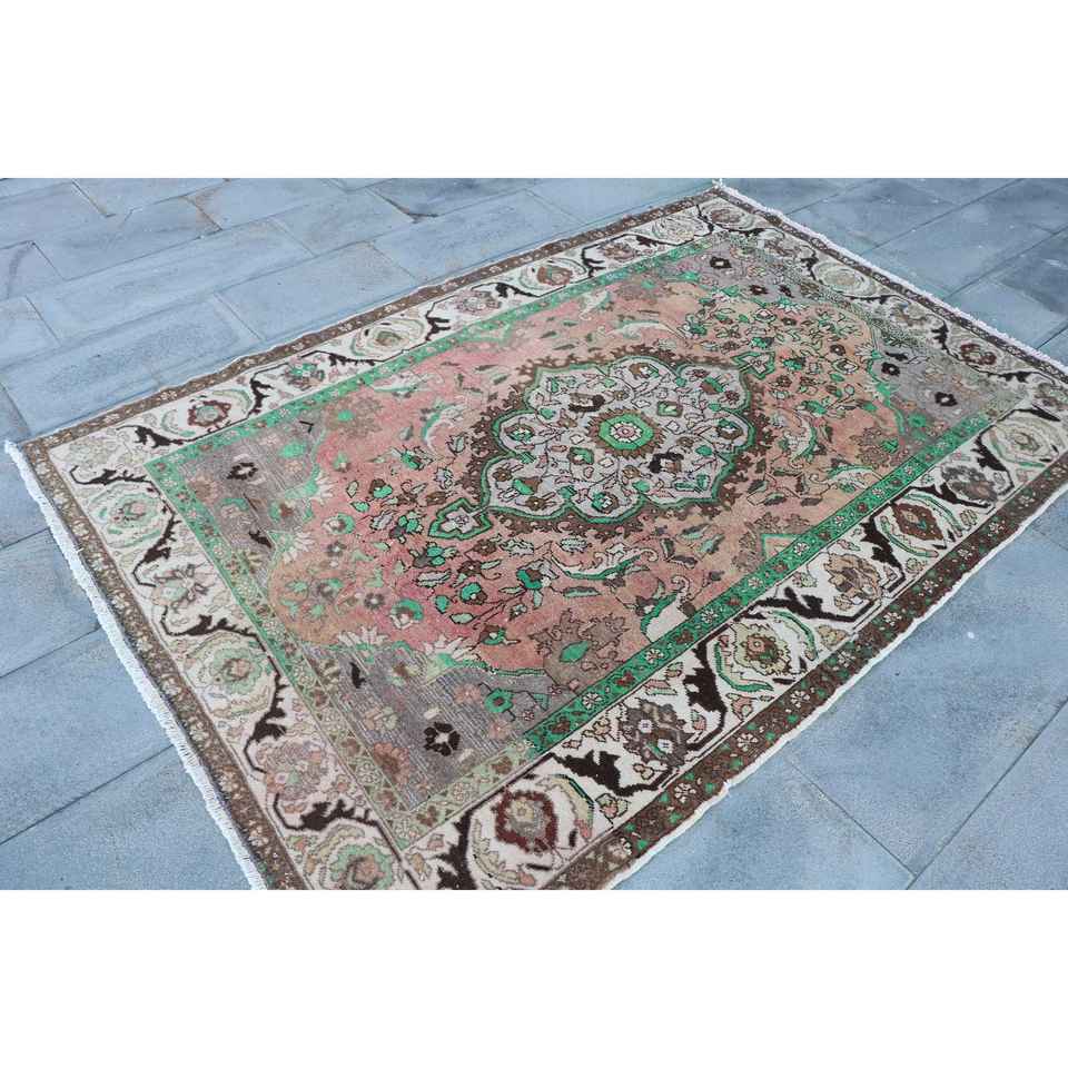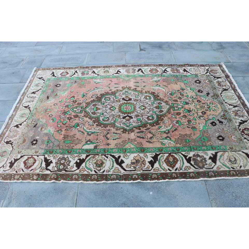 Turkish Area Rug 4.9x7.5 ft, Brown Green Animal Print Rug Wool
