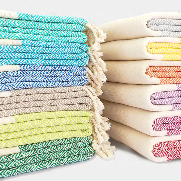 Turkish Beach Towel Herringbone Diamond Pattern Peshtemal Ready Stock 100% Cotton Hammam Towel