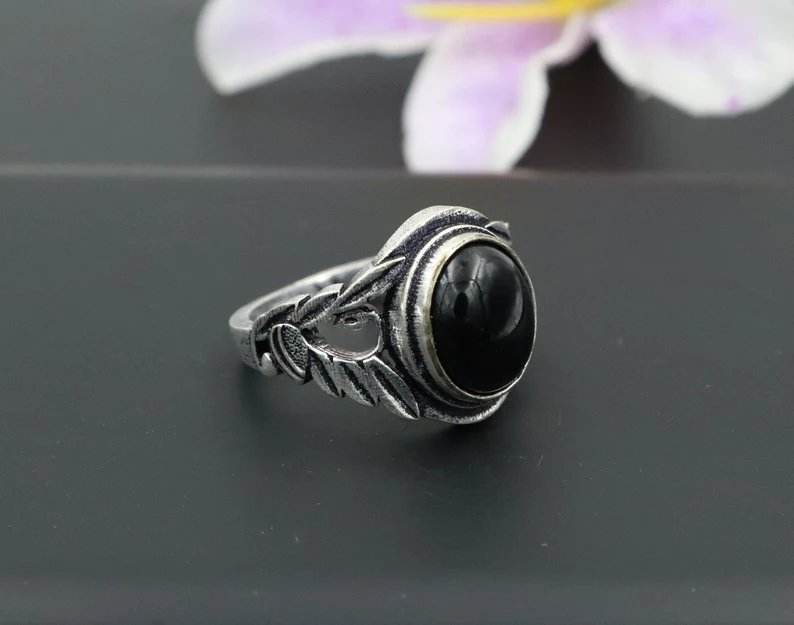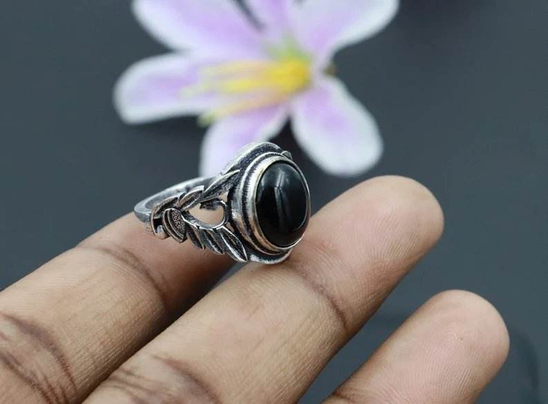 Turkish Black Onyx 925 Sterling Silver Vintage Bezel Set Certified Wedding Party Ring Elegant Traditional Design Unique Handmade