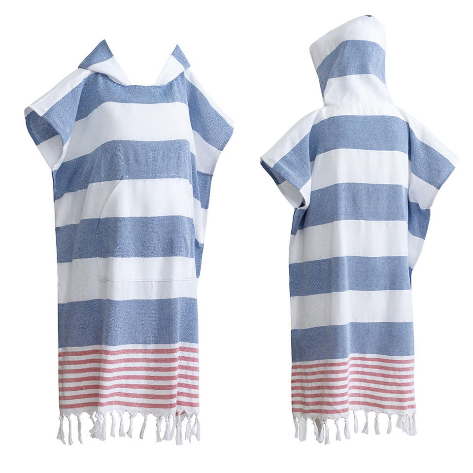 Turkish Cotton Adult Hooded Towel Poncho Quick-Dry Beach Cape for Pool Gym&Travel Striped Pattern for Summer