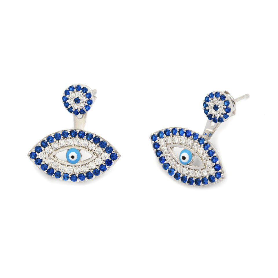 Turkish Eye Design Sapphire CZ Stone Ear Jackets Woman Earrings Wholesale Handmade 925 Sterling Silver Jewelry