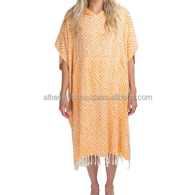Turkish Hammam Beach Poncho Embroidered Towel Hooded Turkish Towel Beach Fouta with Multicolor Beach Cover Ups with High Quality
