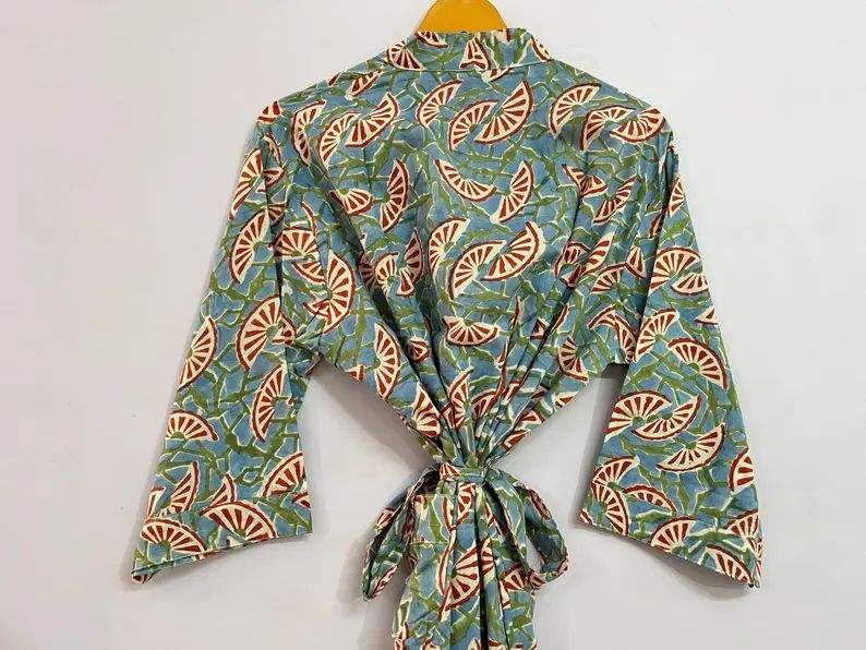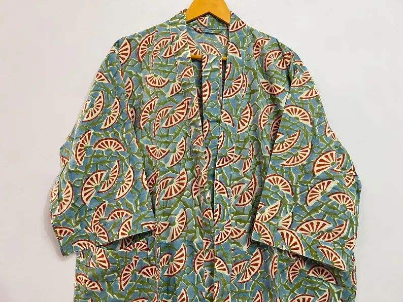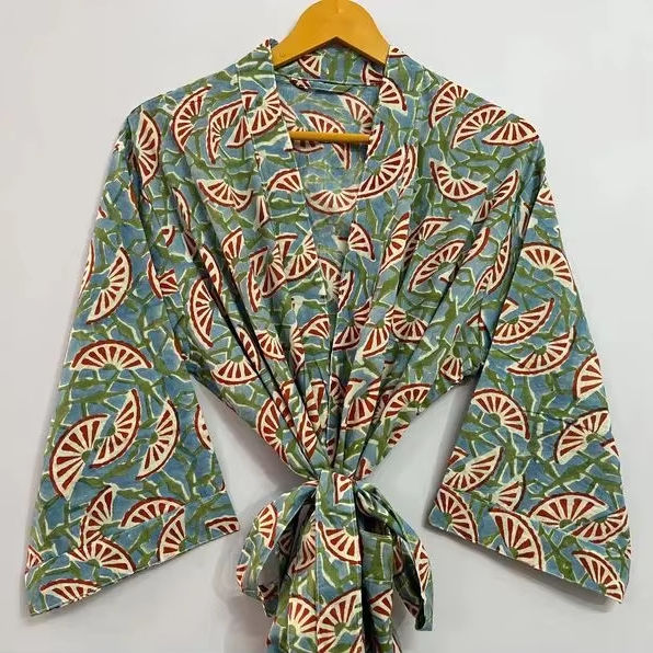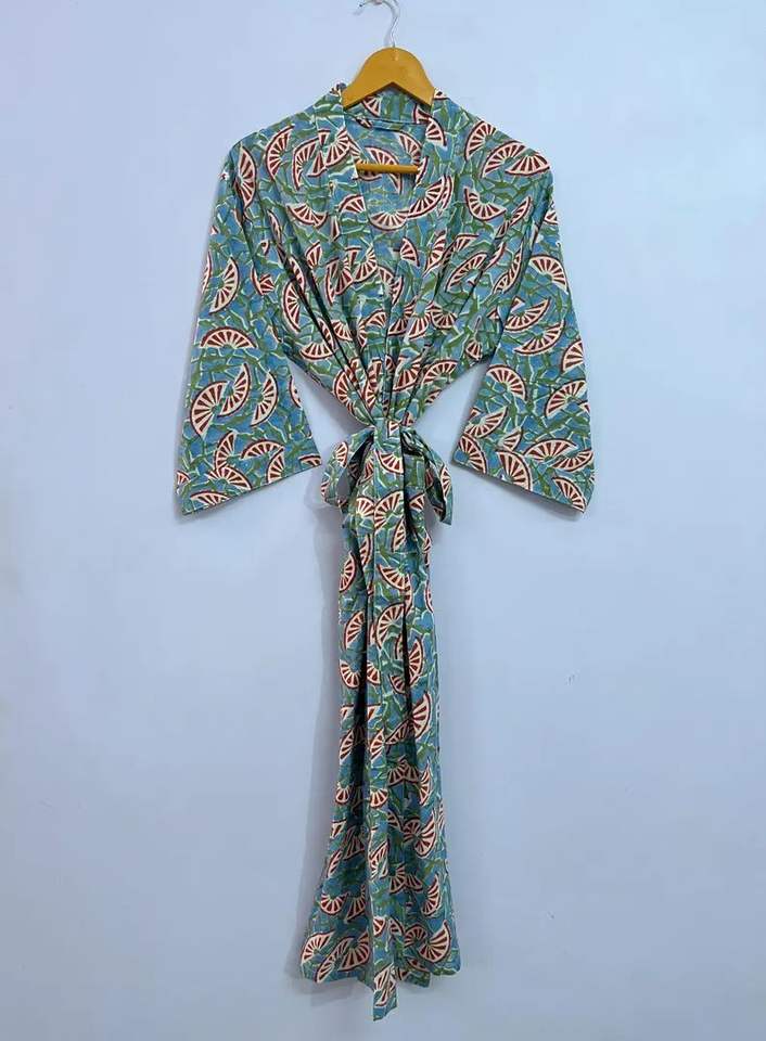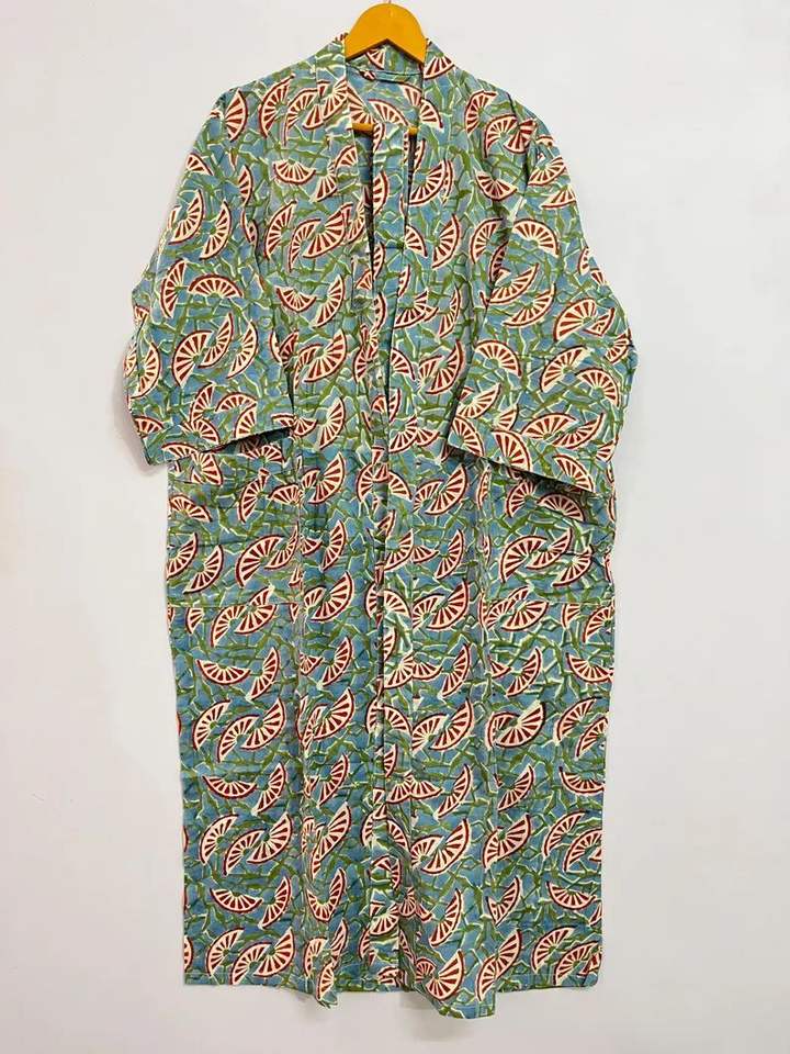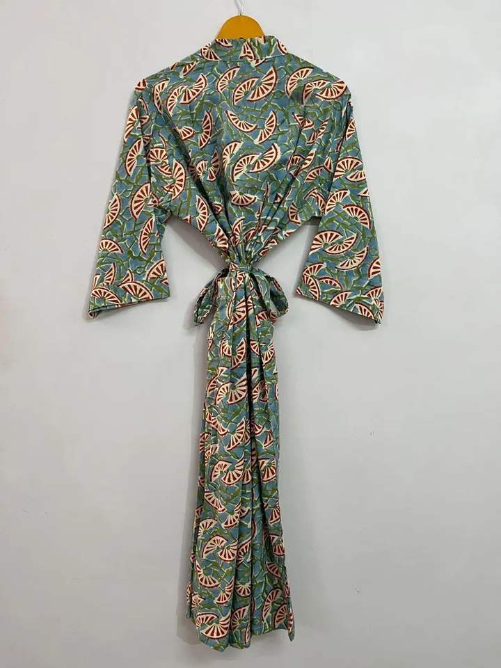 Turkish Handmade Cotton Kimono Dress Floor-Length Nightwear Beach Cover Bathrobe Cardigan-Style Summer Bikini Casual Dresses