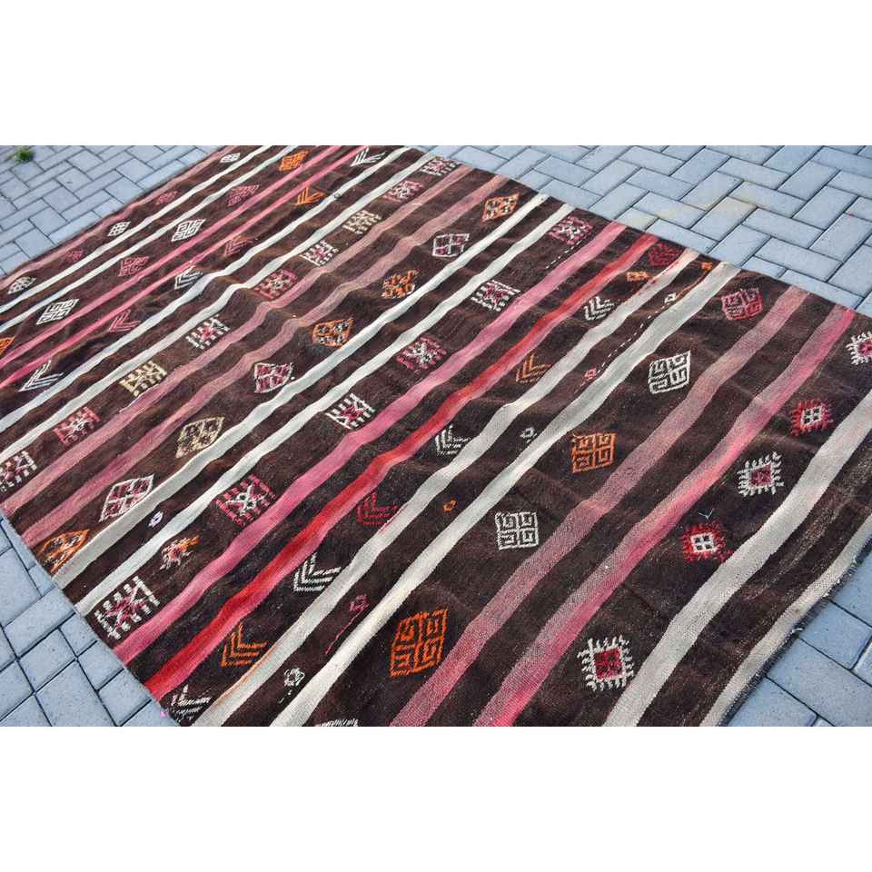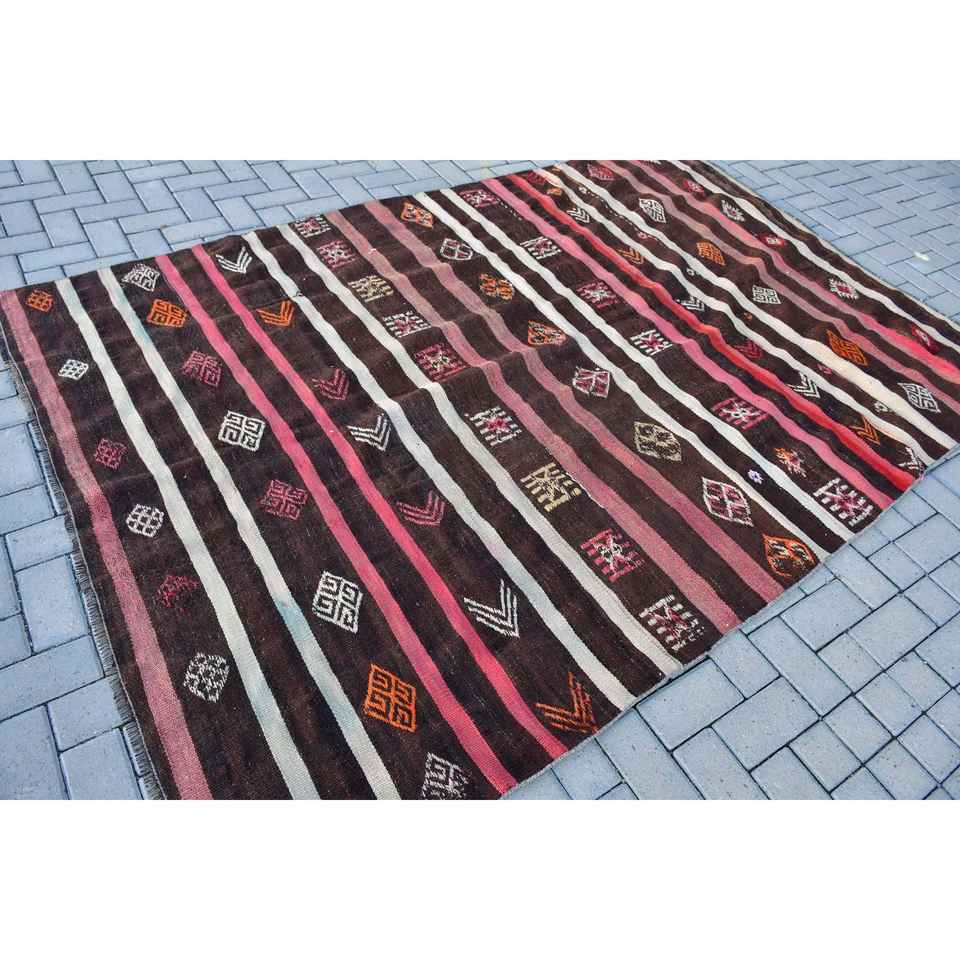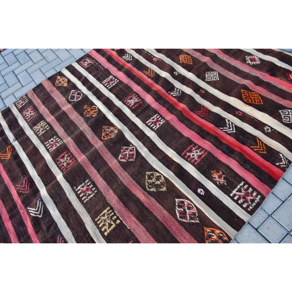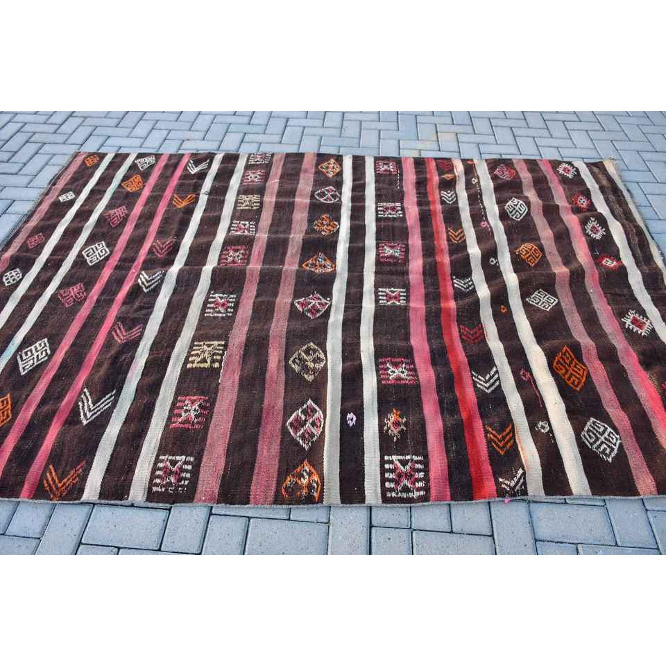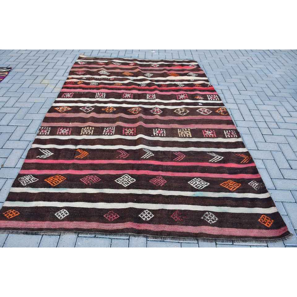 Turkish Kilim Large Rug 5.9x8.8 ft (180x268 cm), Vintage Brown Patchwork Wool Rug