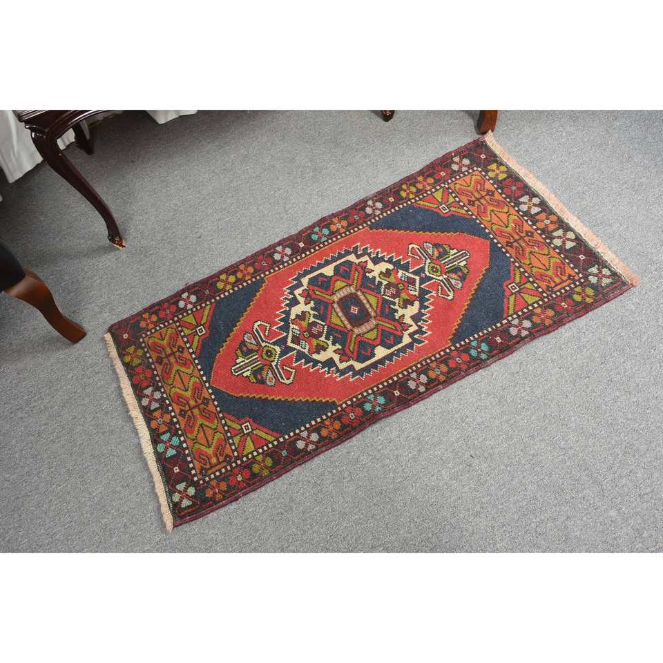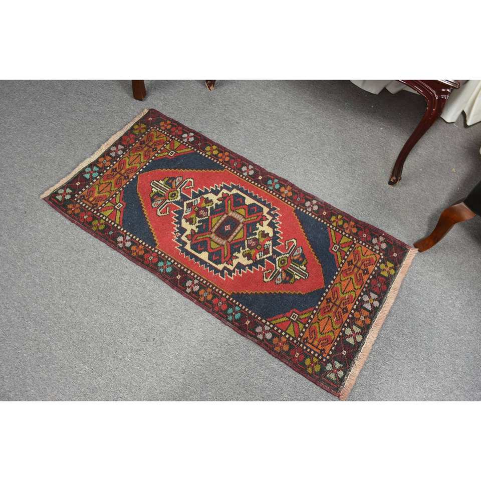 Turkish Kilim Patchwork Rug 1.8 X 3.6ft Red Black Flat Weave Eco Friendly Wool Latex Backing Hallway Rectangle Dining Room Model